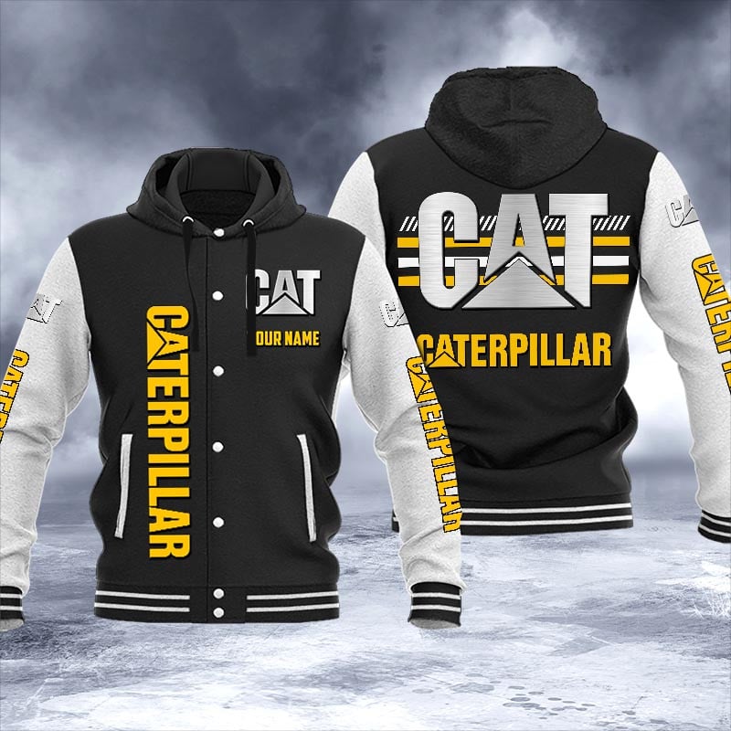Caterpillar Personalized Hooded Baseball Jacket For Fans Black