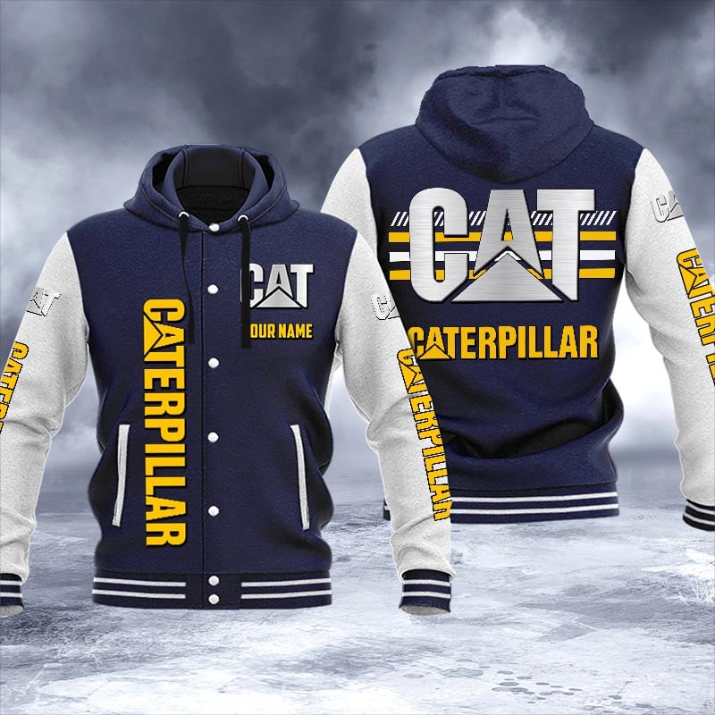 Caterpillar Personalized Hooded Baseball Jacket For Fans Navy