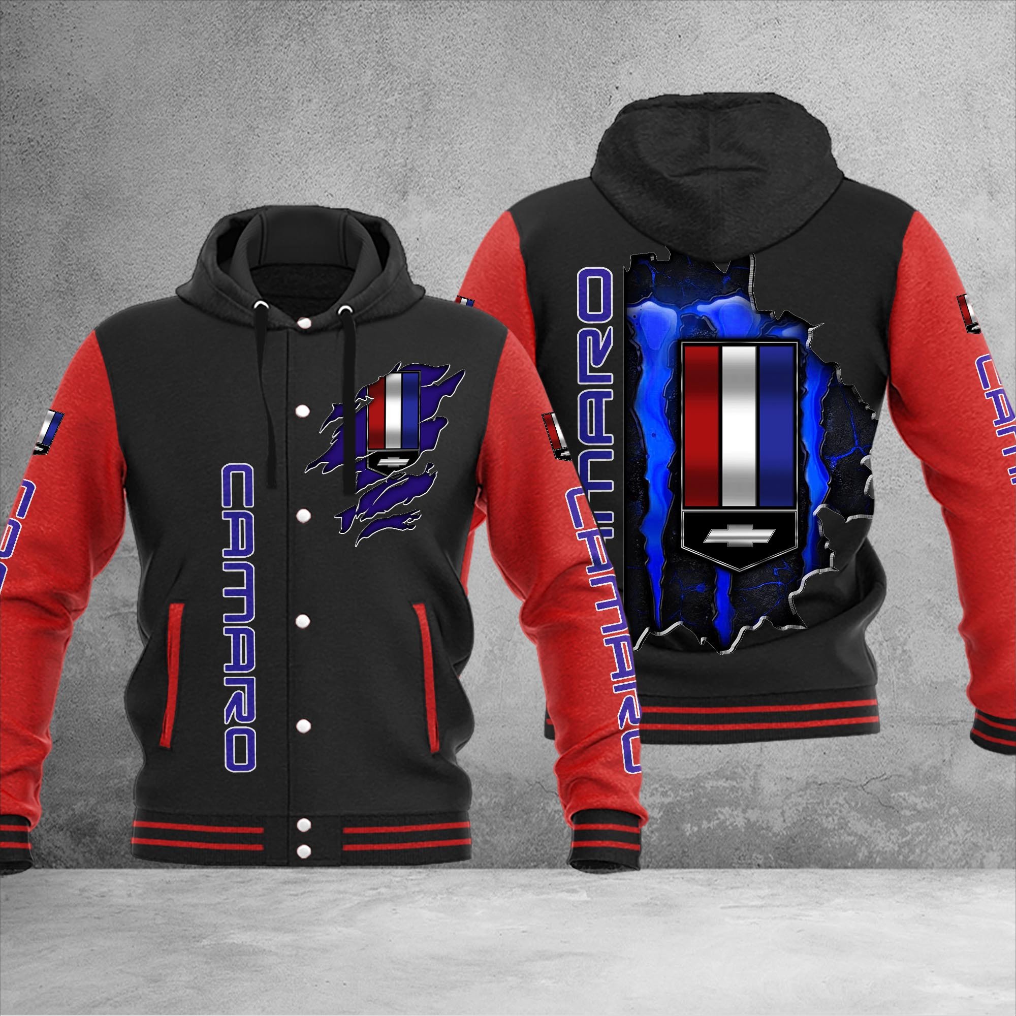 Chevrolet Camaro Personalized Hooded Baseball Jacket For Fans Red Black
