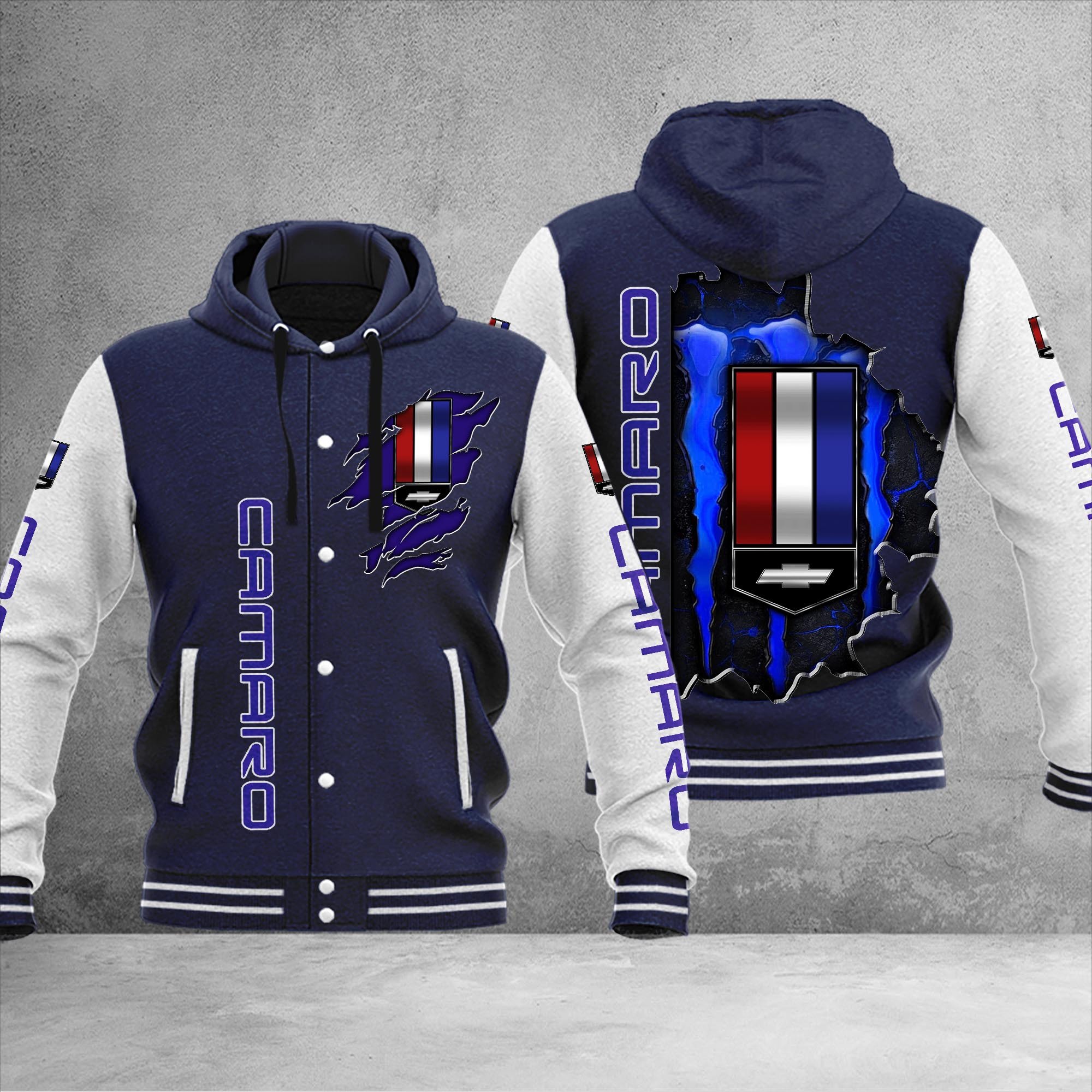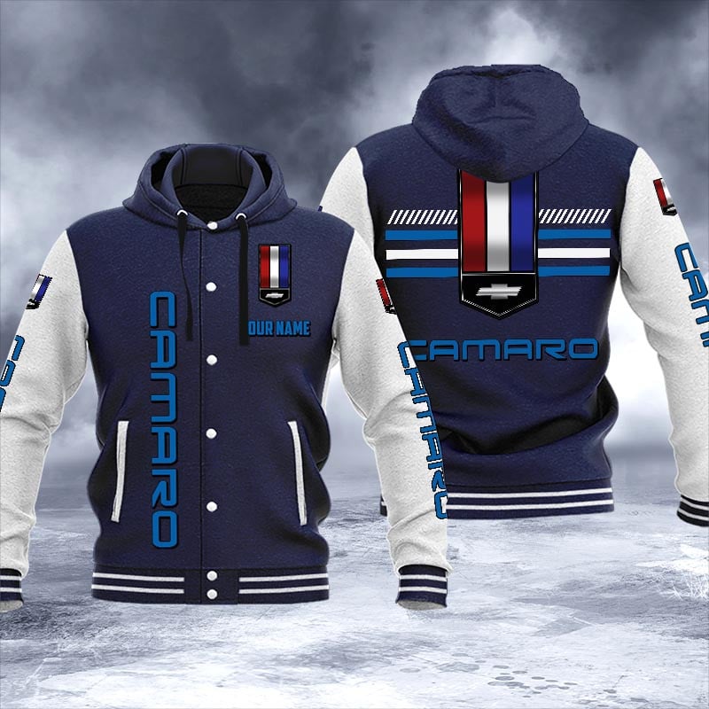 Chevrolet Camaro Personalized Hooded Baseball Jacket For Fans Navy