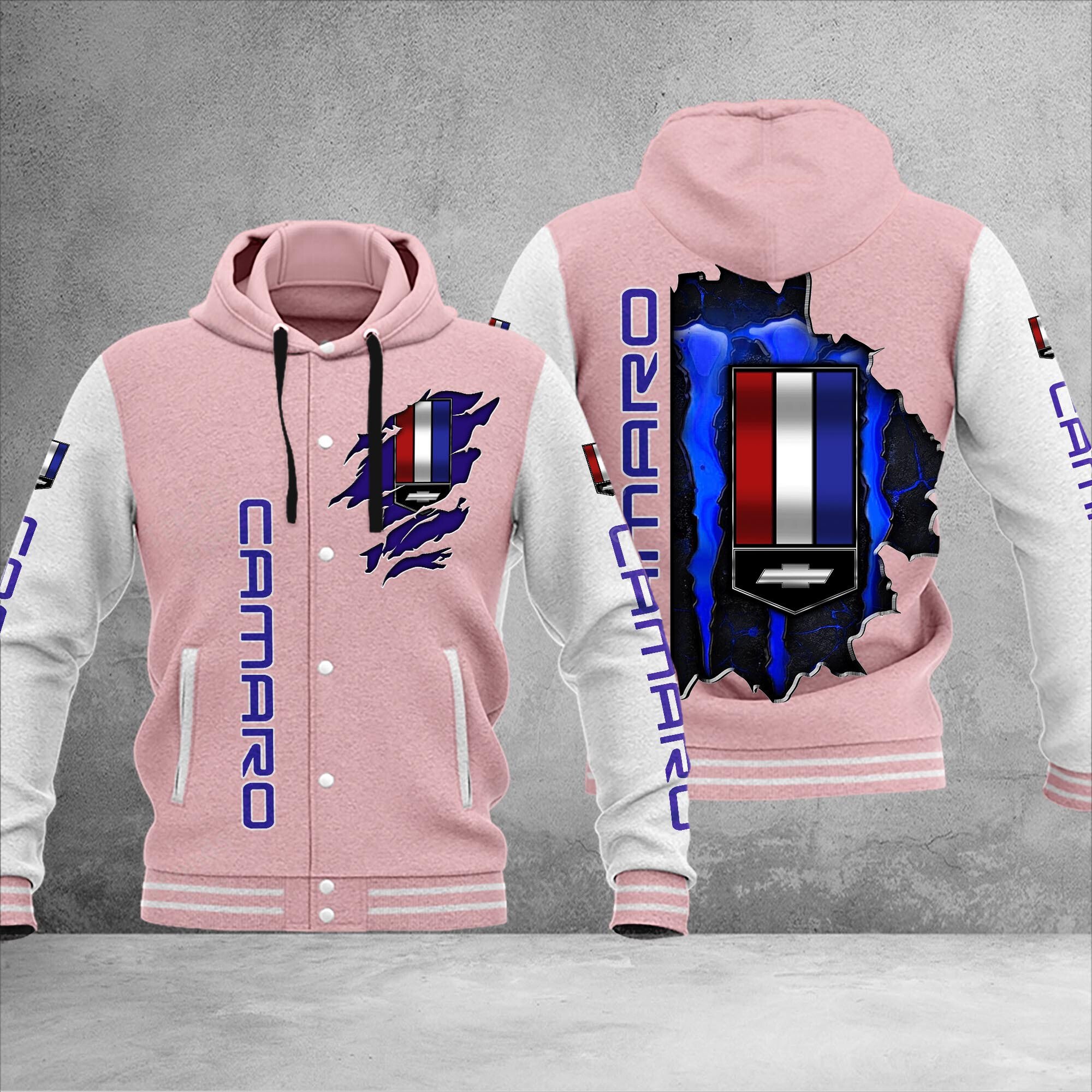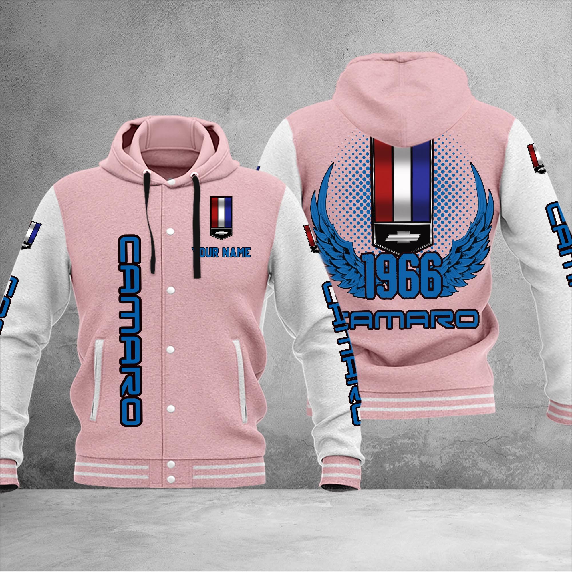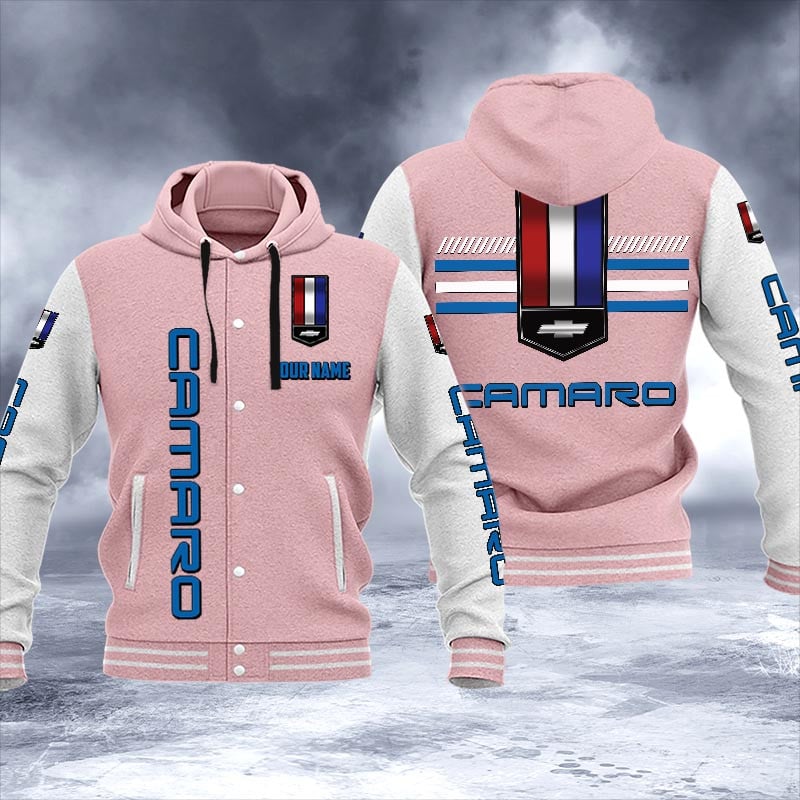 Chevrolet Camaro Personalized Hooded Baseball Jacket For Fans Pink