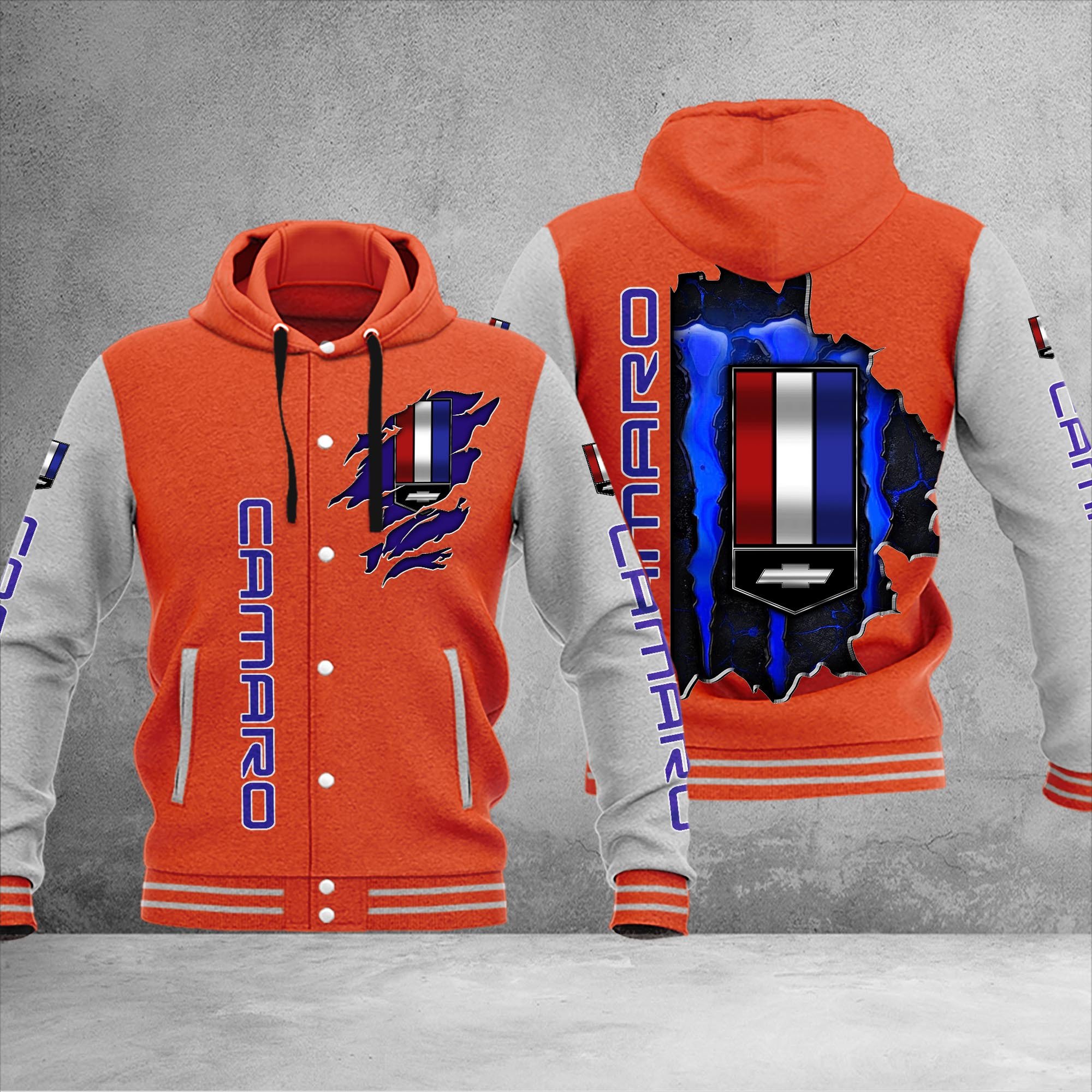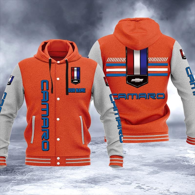 Chevrolet Camaro Personalized Hooded Baseball Jacket For Fans Orange