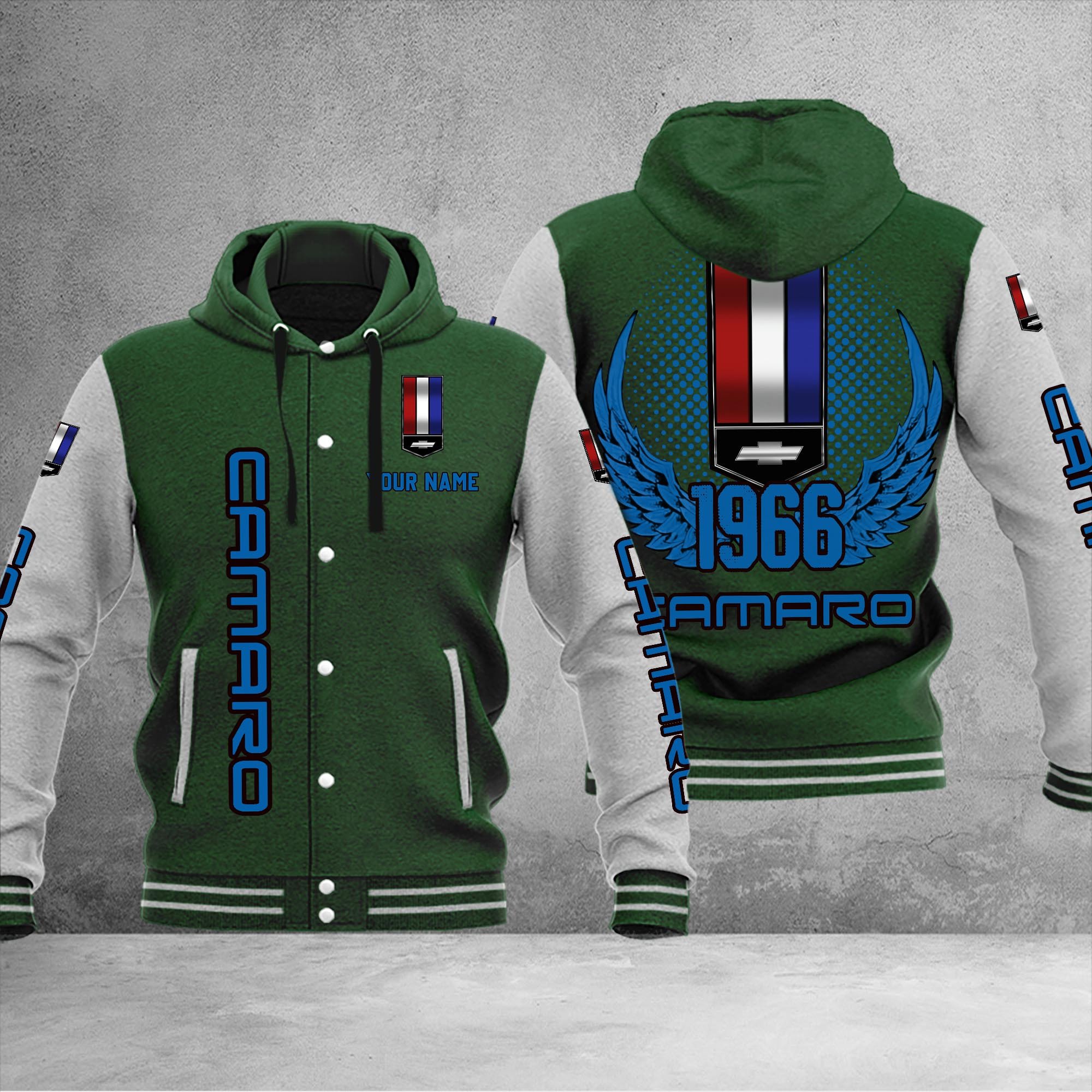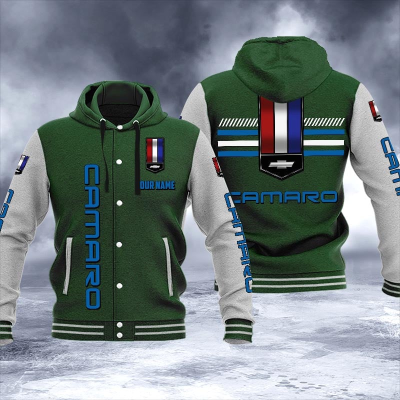 Chevrolet Camaro Personalized Hooded Baseball Jacket For Fans Green