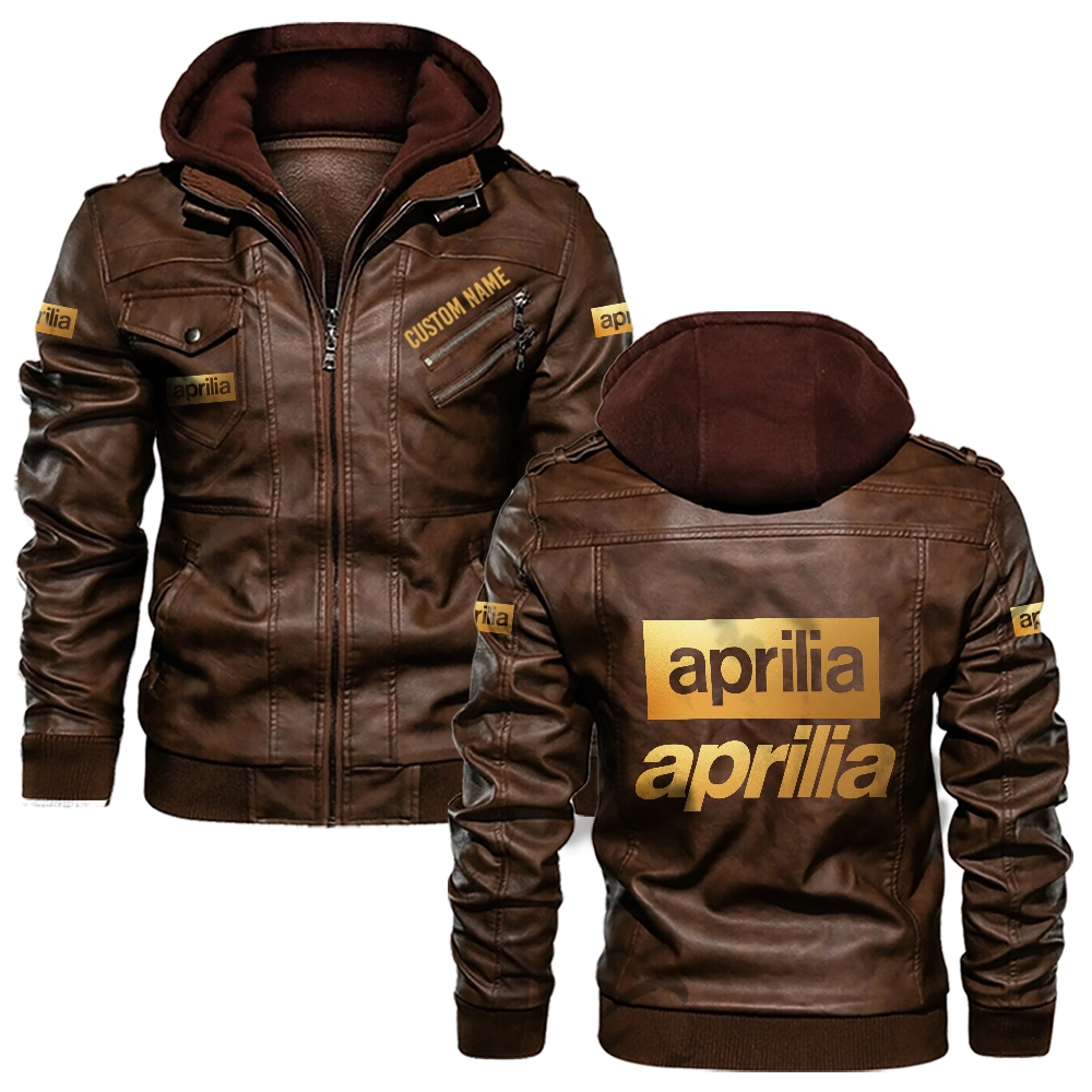 Aprilia Golden Logo Custom Hooded Leather Jacket Brown
