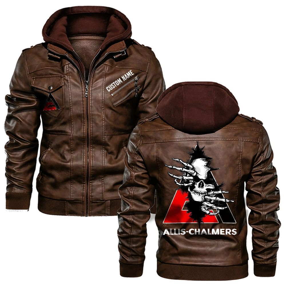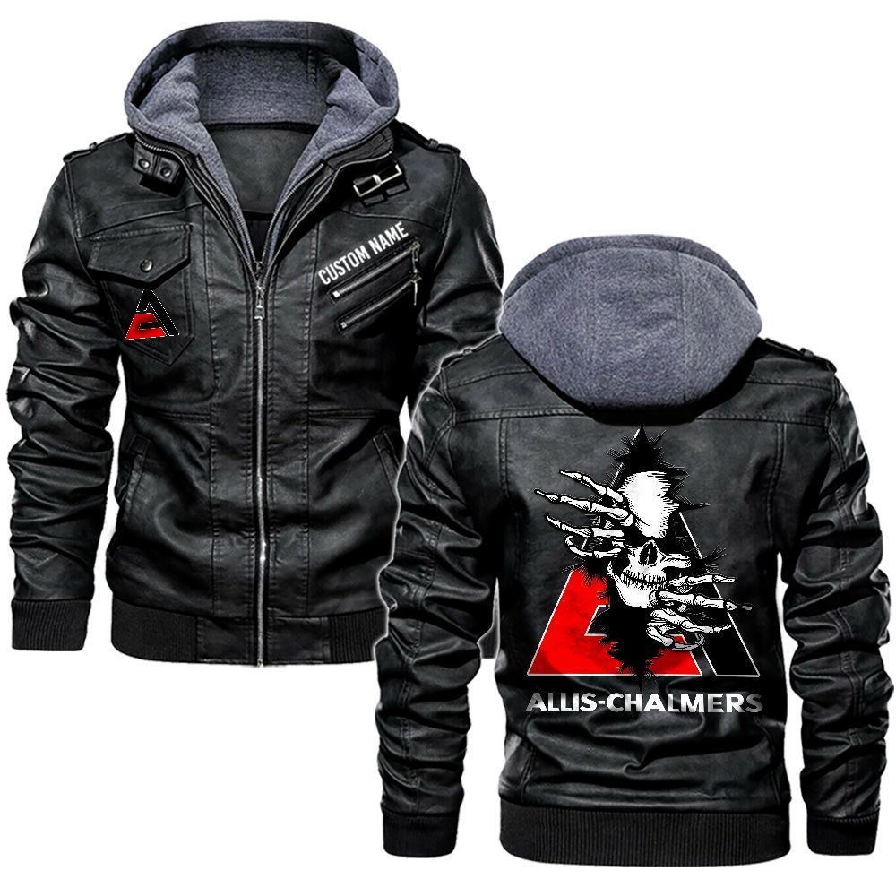 Allis Chalmers Custom Name Skull Biker Car Driver Personalized Hooded Leather Jacket For Men Women