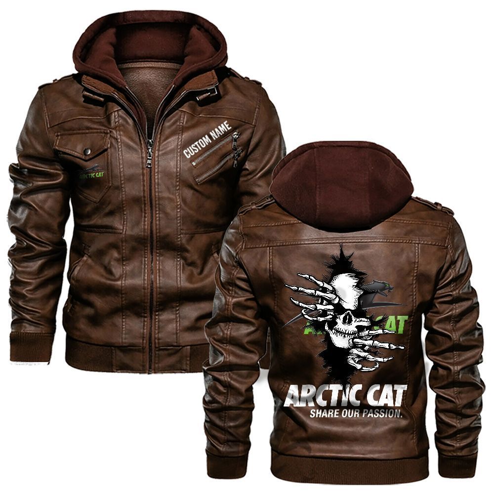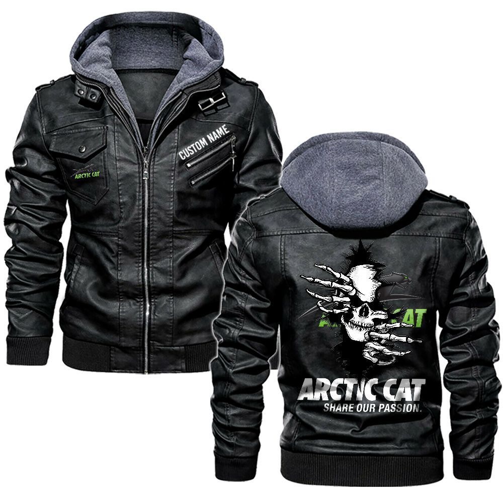 Arctic cat Custom Name Skull Biker Car Driver Personalized Hooded Leather Jacket For Men Women
