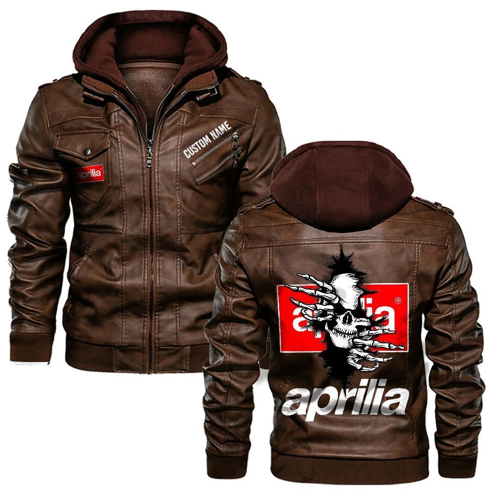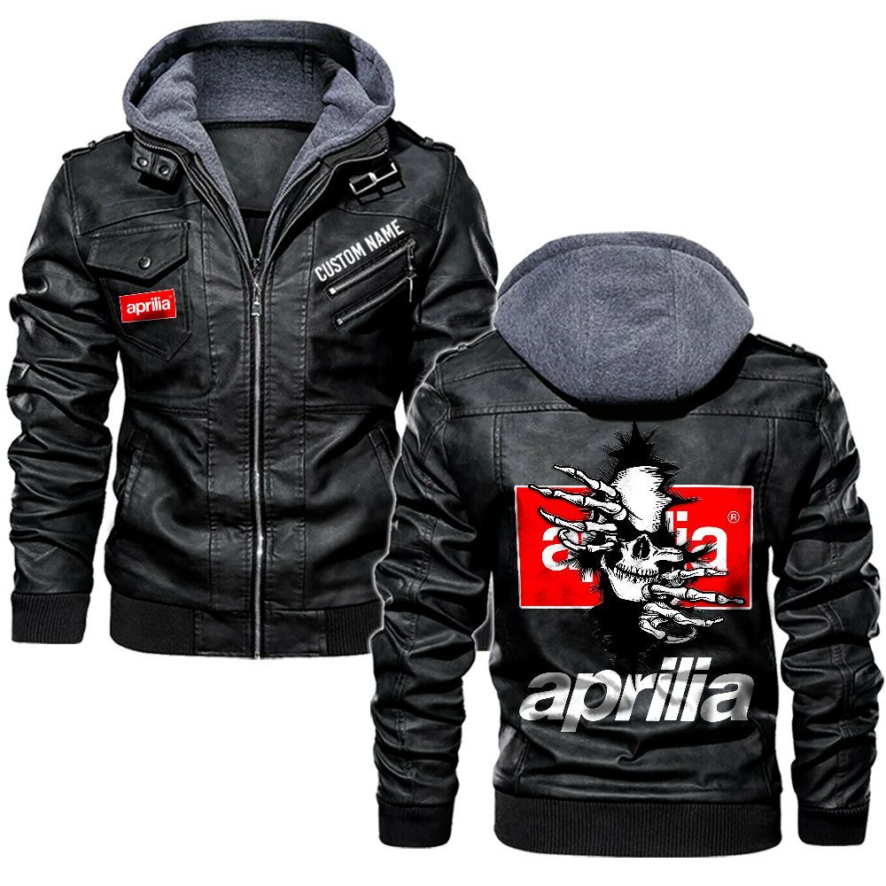 Aprilia Custom Name Skull Biker Car Driver Personalized Hooded Leather Jacket For Men Women