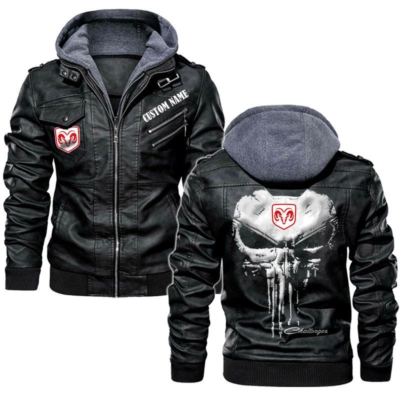 Custom Name Punisher Skull Dodge Challenger Hooded Leather Jacket