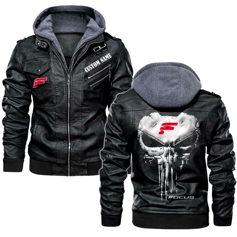Custom Name Punisher Skull FOCUS Bikes Hooded Leather Jacket
