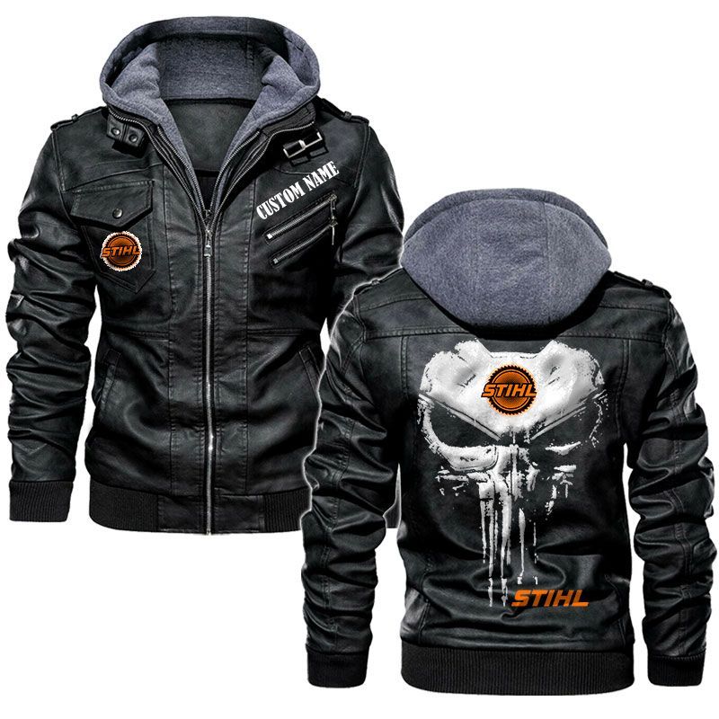 Custom Name Punisher Skull Stihl Hooded Leather Jacket