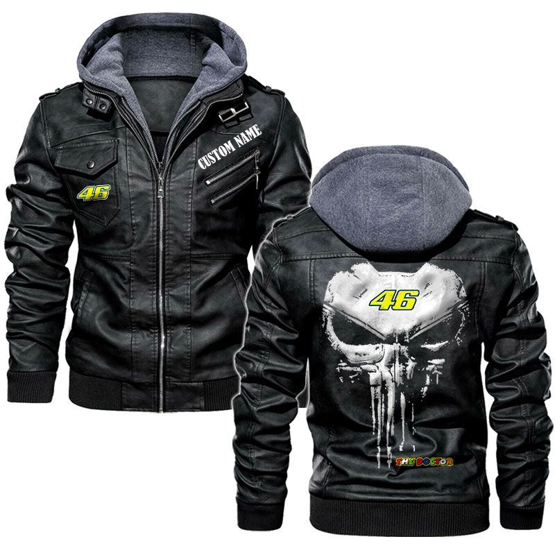 Custom Name Punisher Skull Valentino Rossi 46 Hooded Leather Jacket