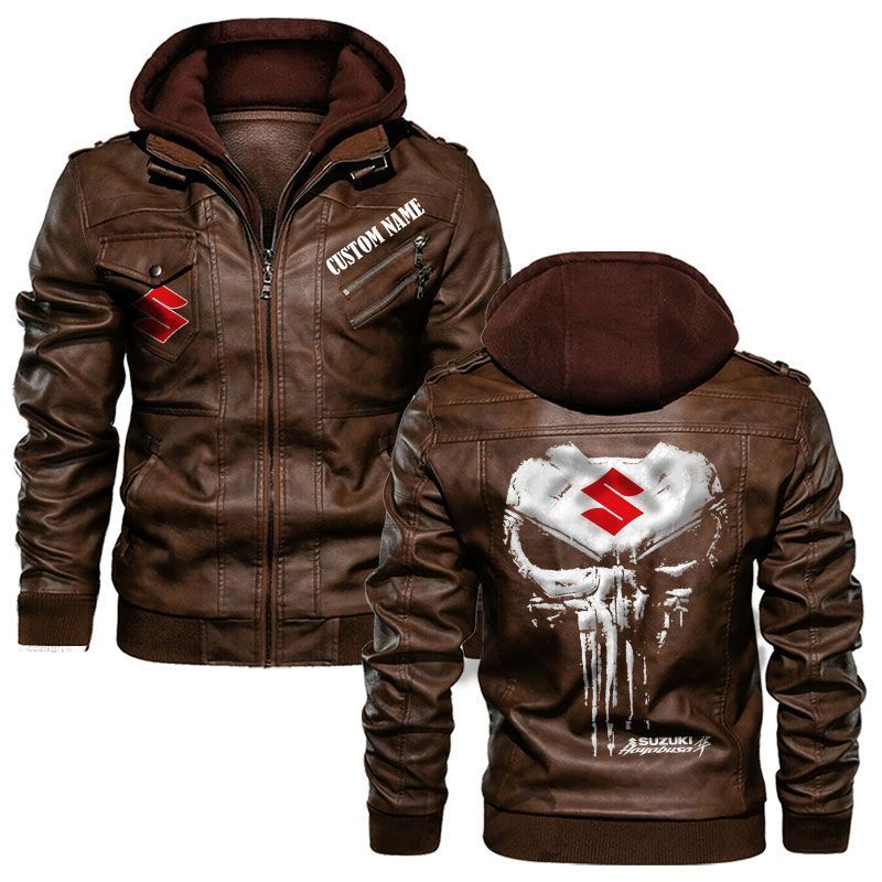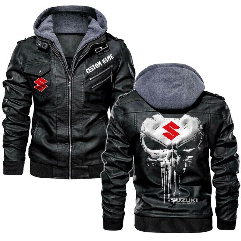 Custom Name Punisher Skull Suzuki Hooded Leather Jacket