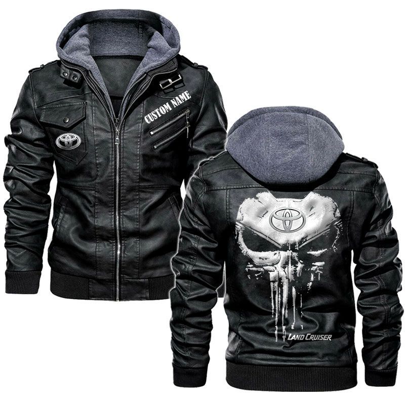 Custom Name Punisher Skull Toyota Land Cruiser Hooded Leather Jacket