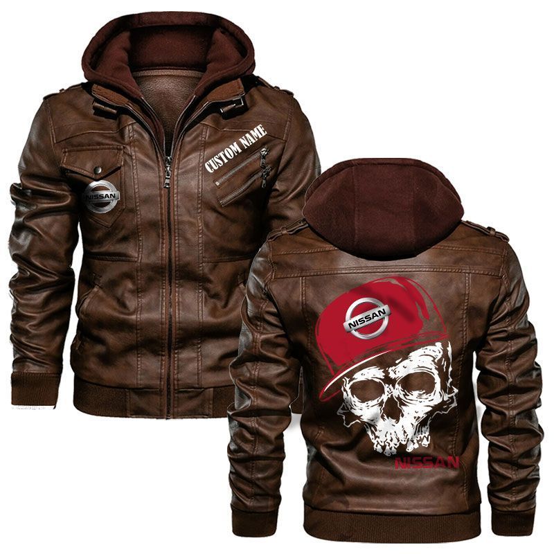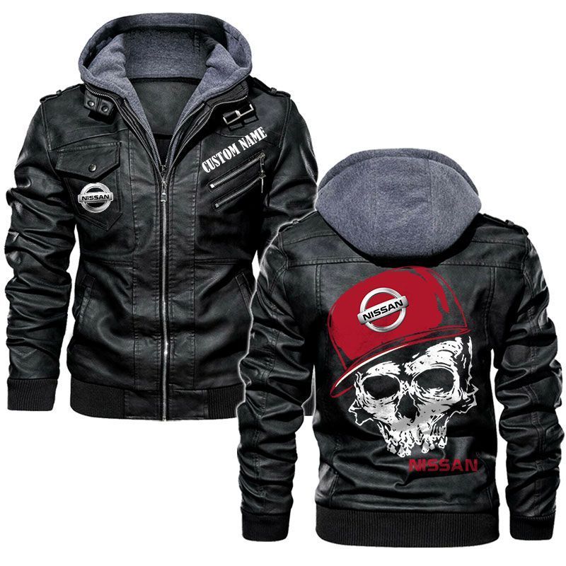 Custom Name Skull Design Nissan Hooded Leather Jacket