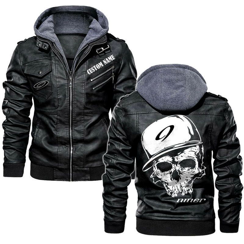 Custom Name Skull Design Niner Bikes Hooded Leather Jacket