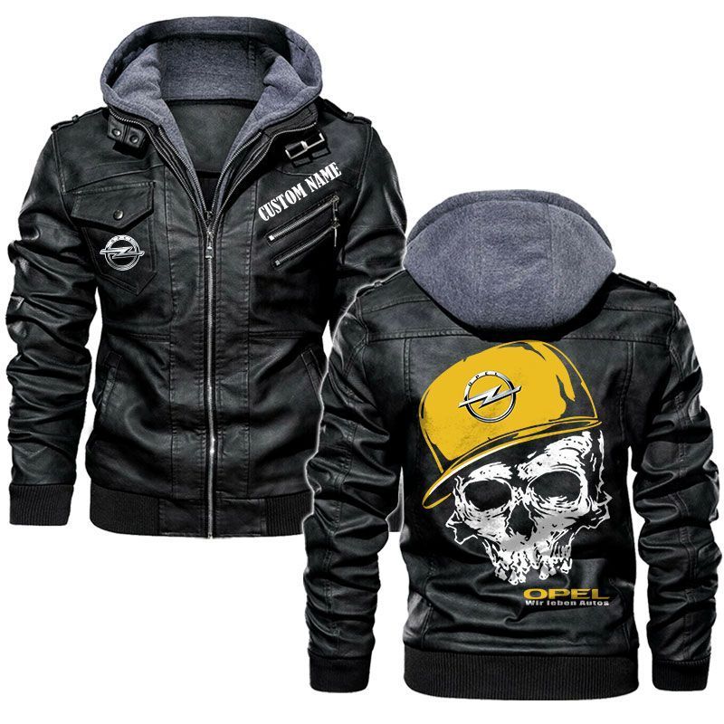 Custom Name Skull Design Opel Hooded Leather Jacket