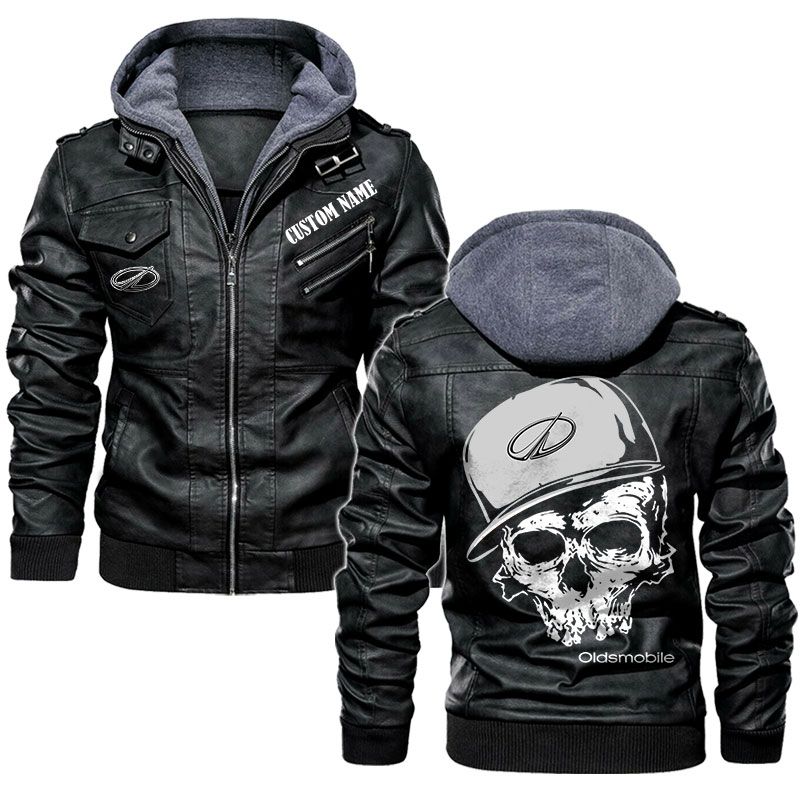 Custom Name Skull Design Oldsmobile Hooded Leather Jacket
