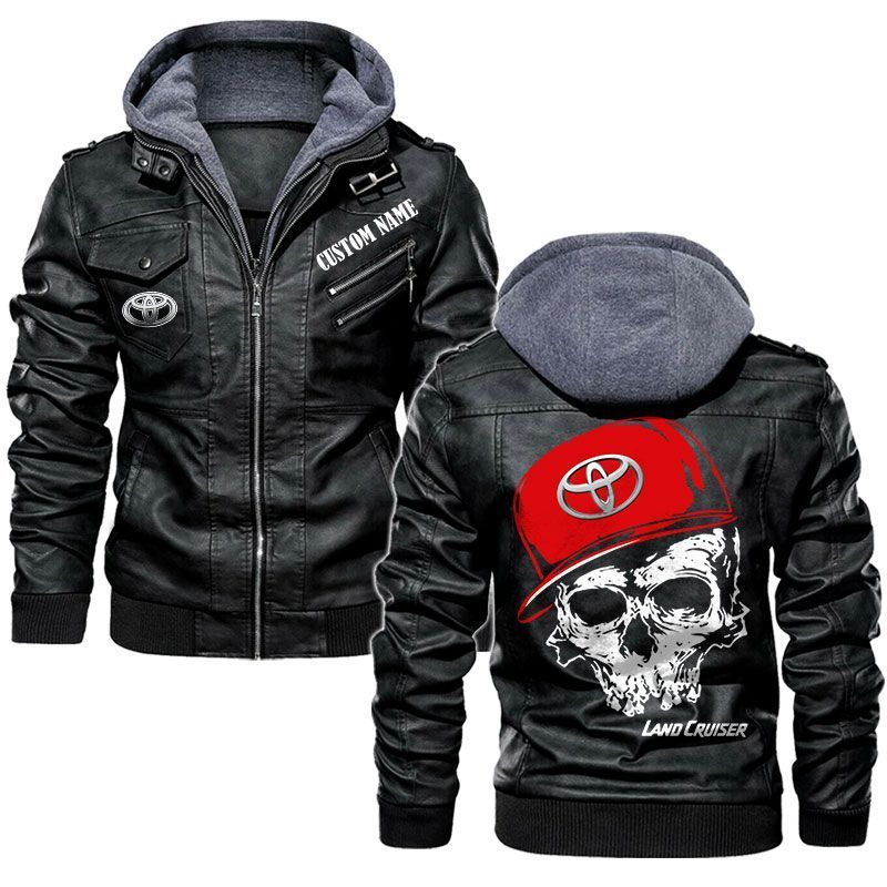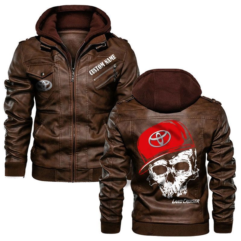 Custom Name Skull Design Toyota Land Cruiser Hooded Leather Jacket