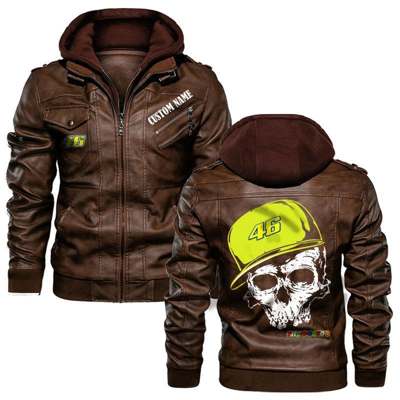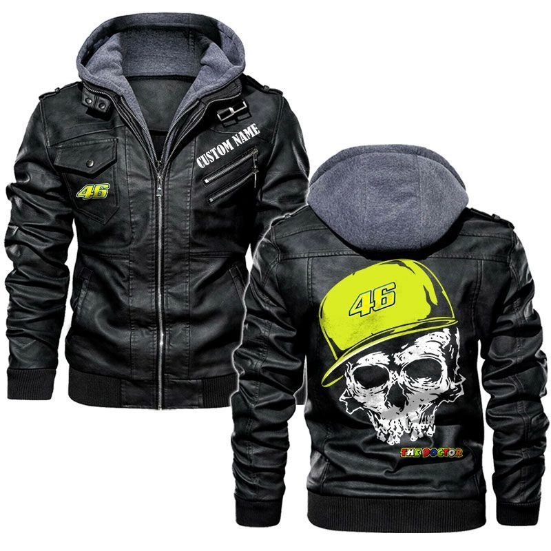 Custom Name Skull Design Valentino Rossi 46 Hooded Leather Jacket