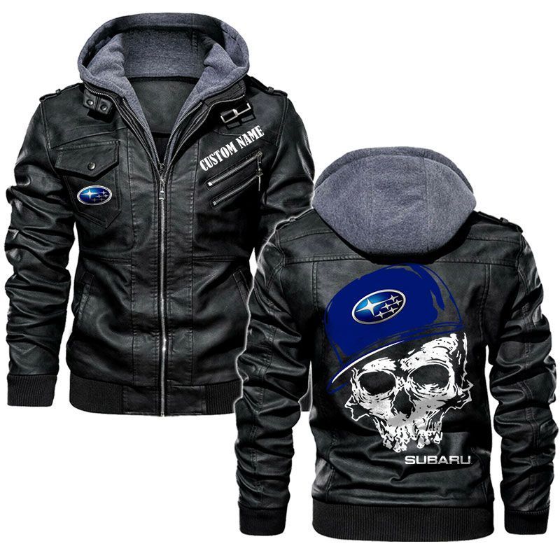 Custom Name Skull Design Subaru Hooded Leather Jacket