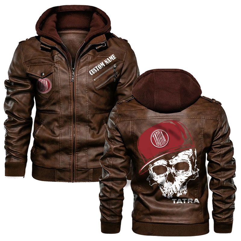 Custom Name Skull Design Tatra Hooded Leather Jacket