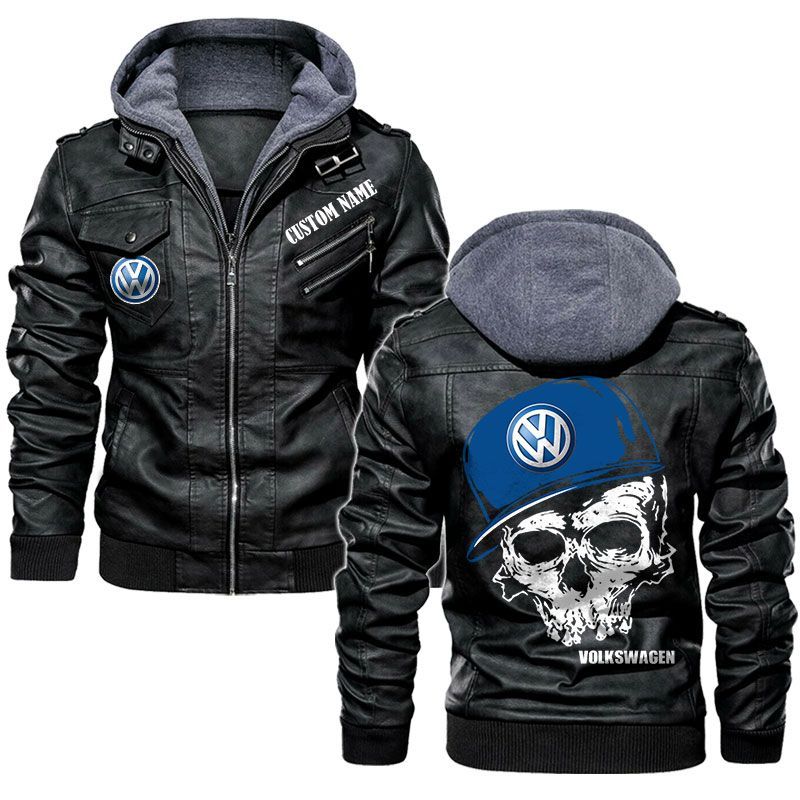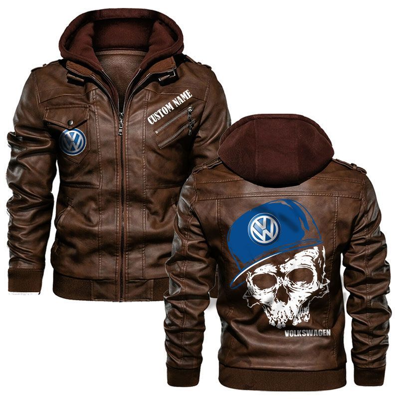 Custom Name Skull Design Volkswagen Group Hooded Leather Jacket