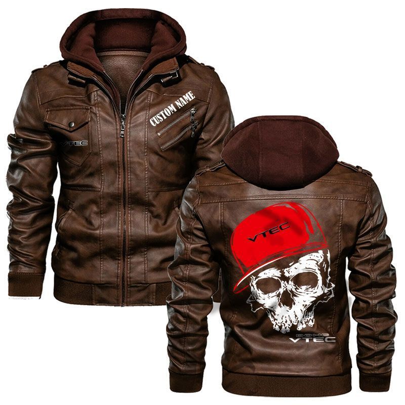 Custom Name Skull Design VTEC Hooded Leather Jacket