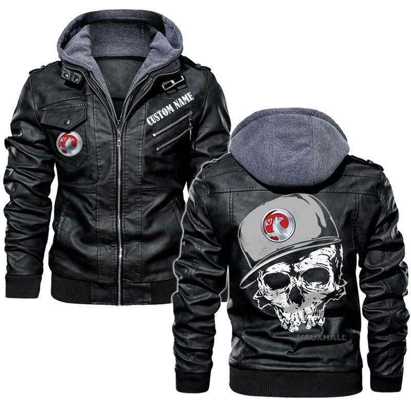 Custom Name Skull Design Vauxhall Astra Hooded Leather Jacket