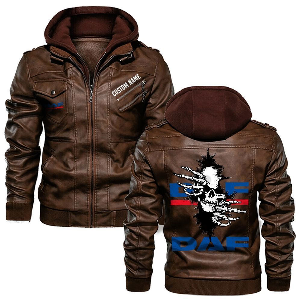 Daf Custom Name Skull Biker Car Driver Personalized Hooded Leather Jacket For Men Women