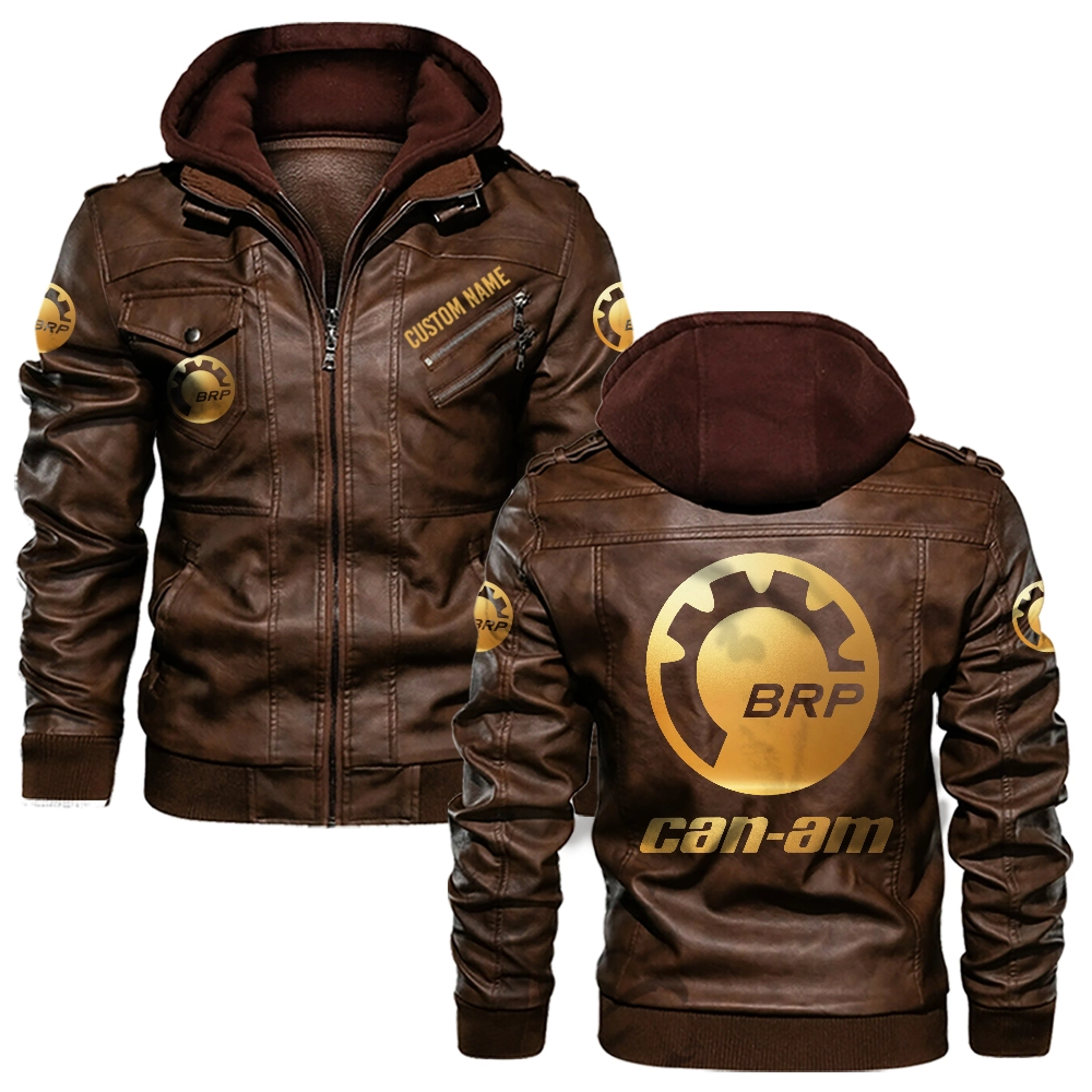Can Am Golden Logo Custom Hooded Leather Jacket Brown