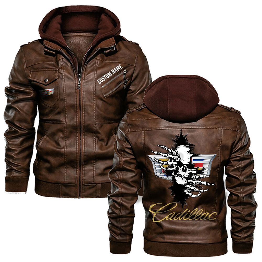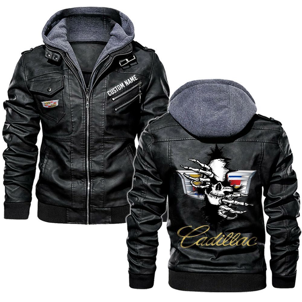 Cadillac Custom Name Skull Biker Car Driver Personalized Hooded Leather Jacket For Men Women