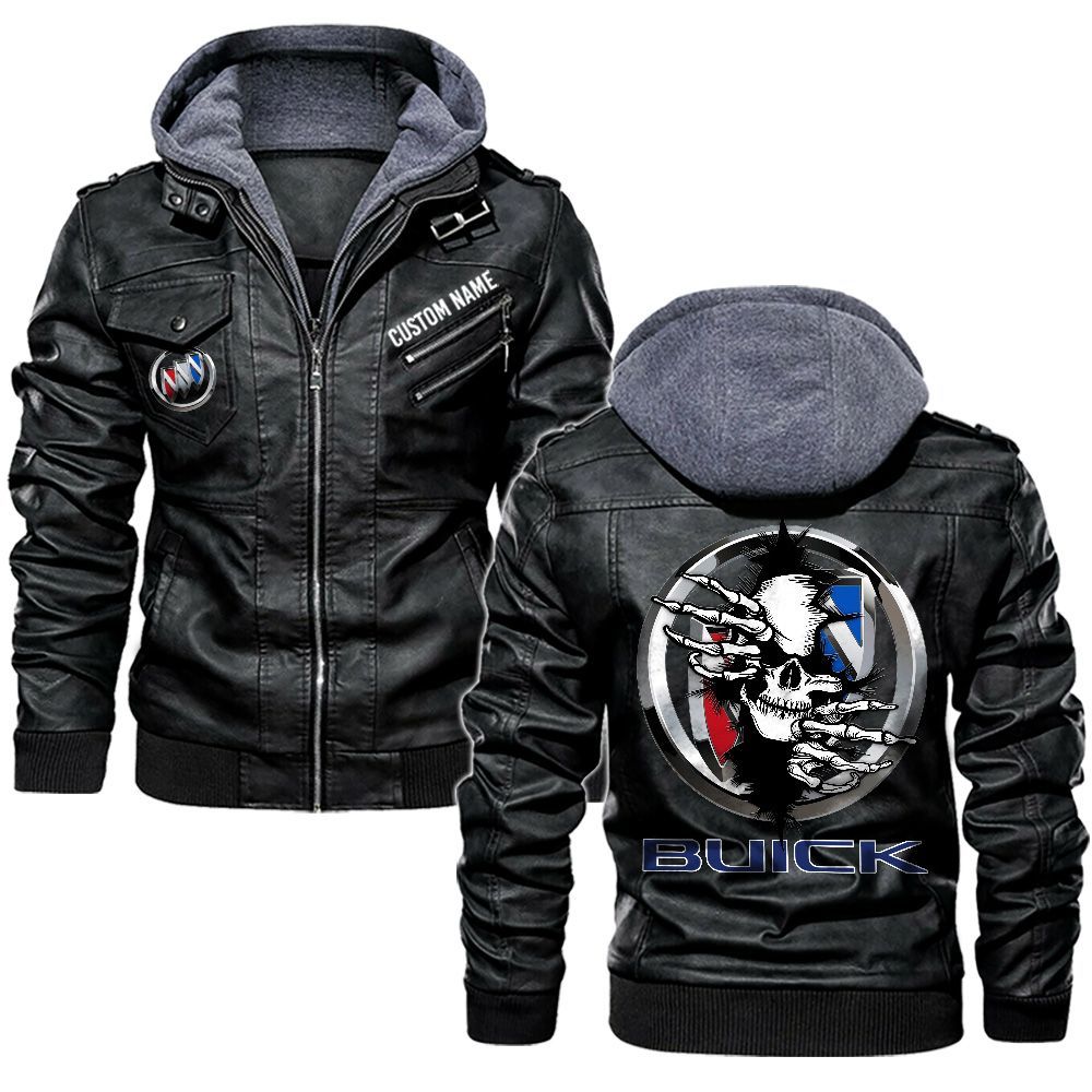Buick Custom Name Skull Biker Car Driver Personalized Hooded Leather Jacket For Men Women