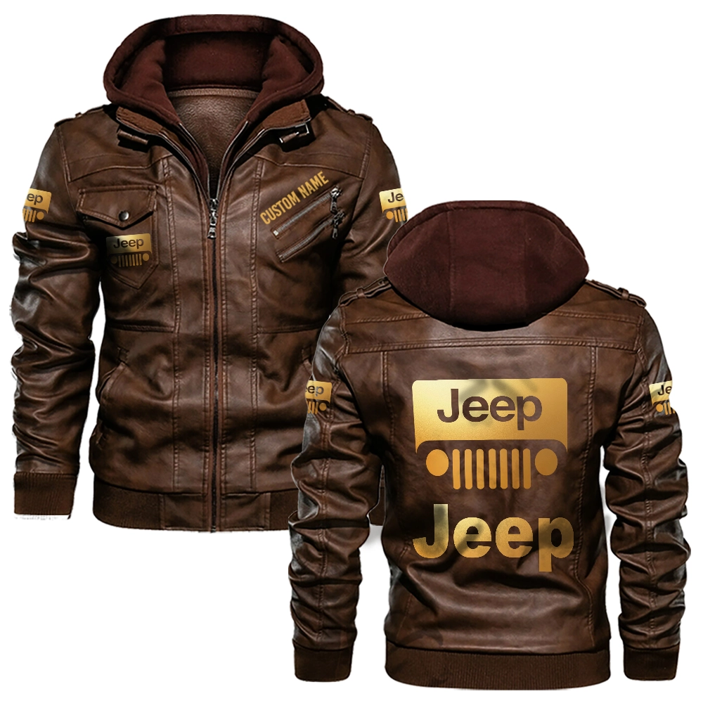 Jeep Hooded Leather Jacket For Men Women
