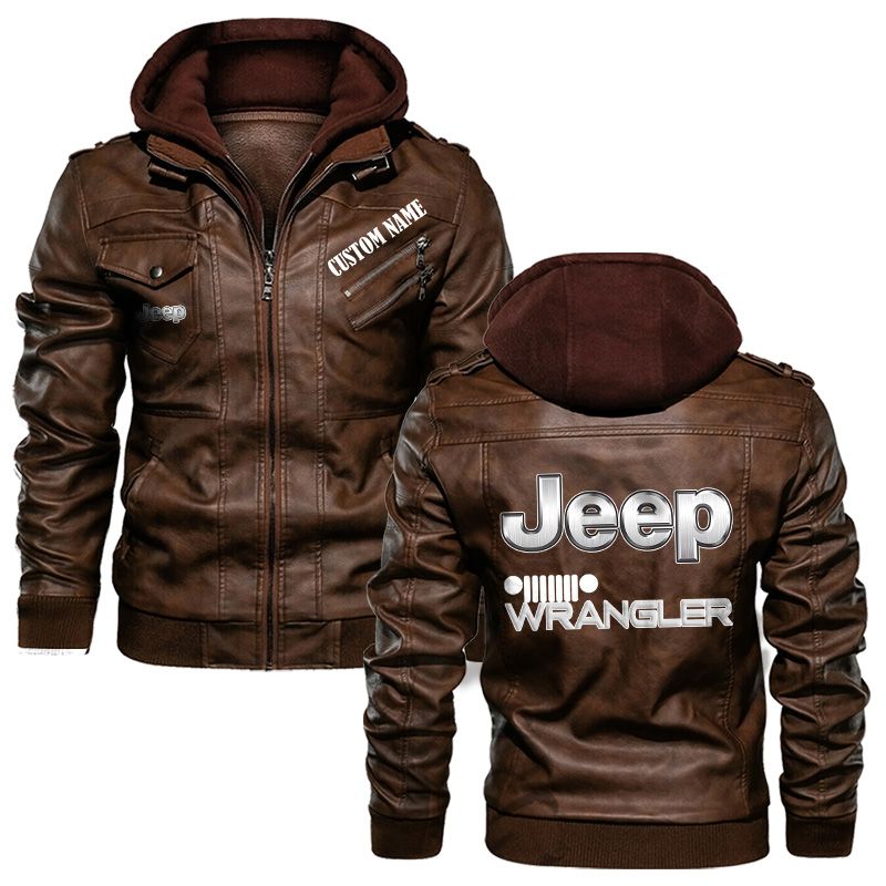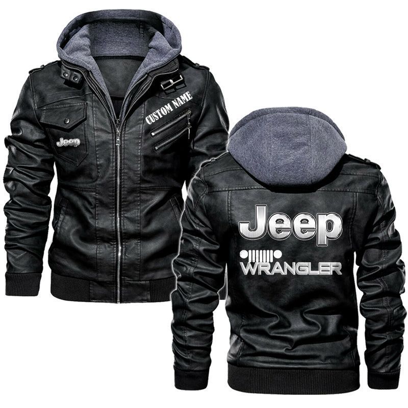 Jeep wrangler Hooded Leather Jacket For Men Women