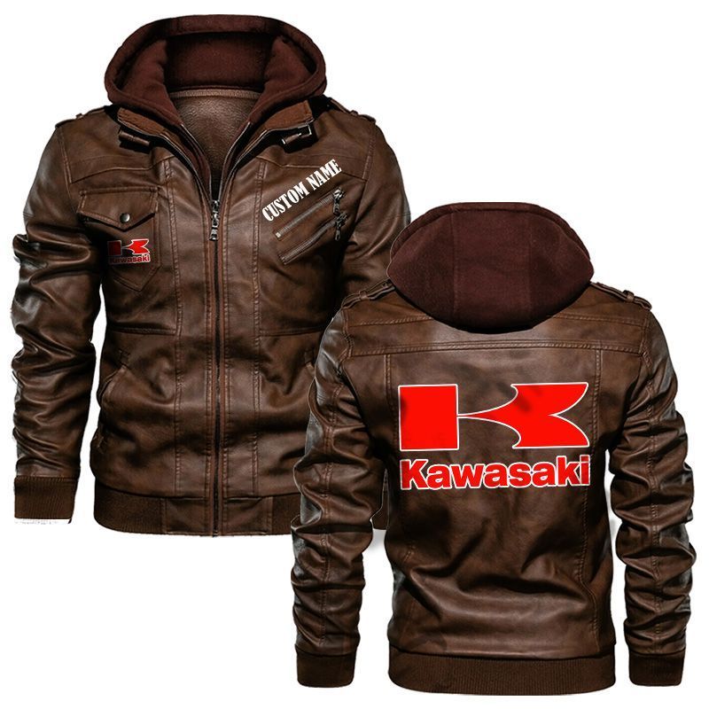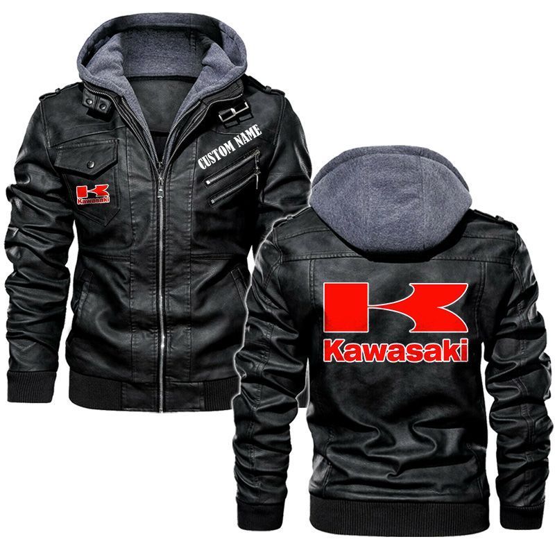 Kawasaki Hooded Leather Jacket For Men Women