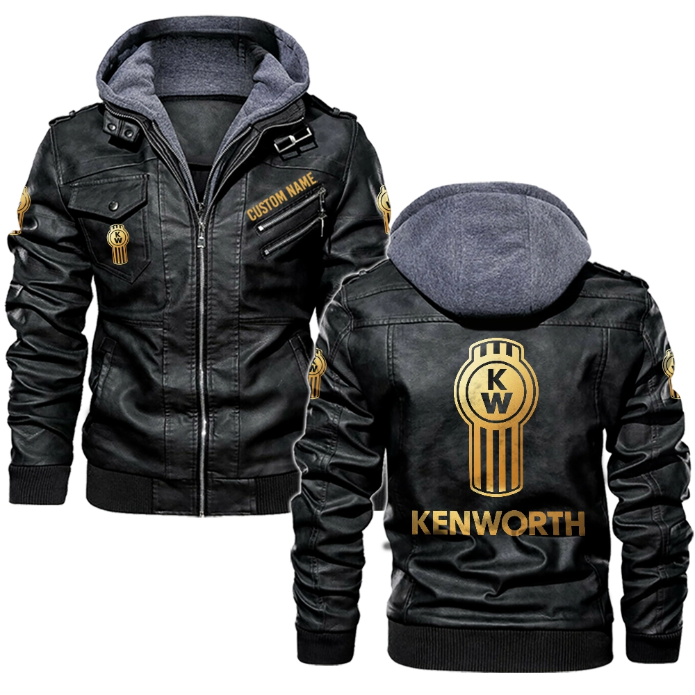 Kenworth Custom Name Skull Biker Car Driver Personalized Hooded Leather Jacket For Men Women