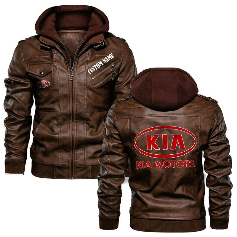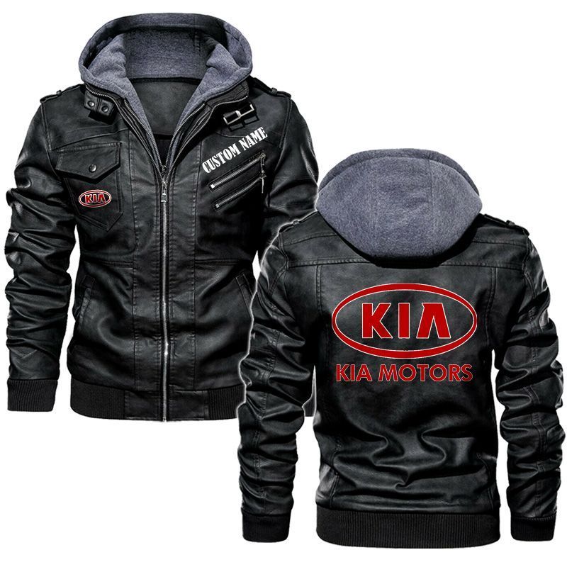 Kia Custom Name Skull Biker Car Driver Personalized Hooded Leather Jacket For Men Women
