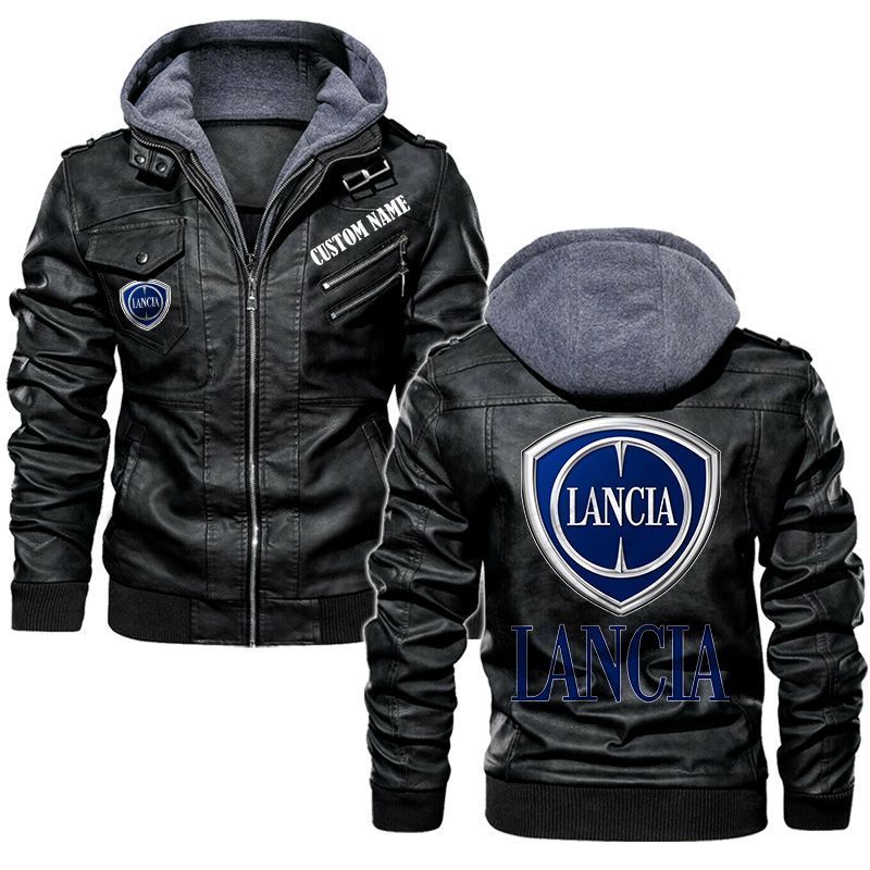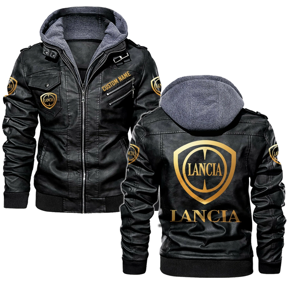 Lancia Custom Name Skull Biker Car Driver Personalized Hooded Leather Jacket For Men Women