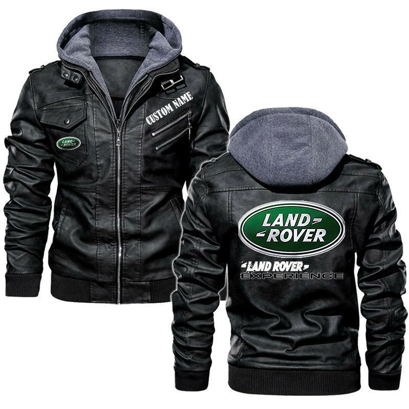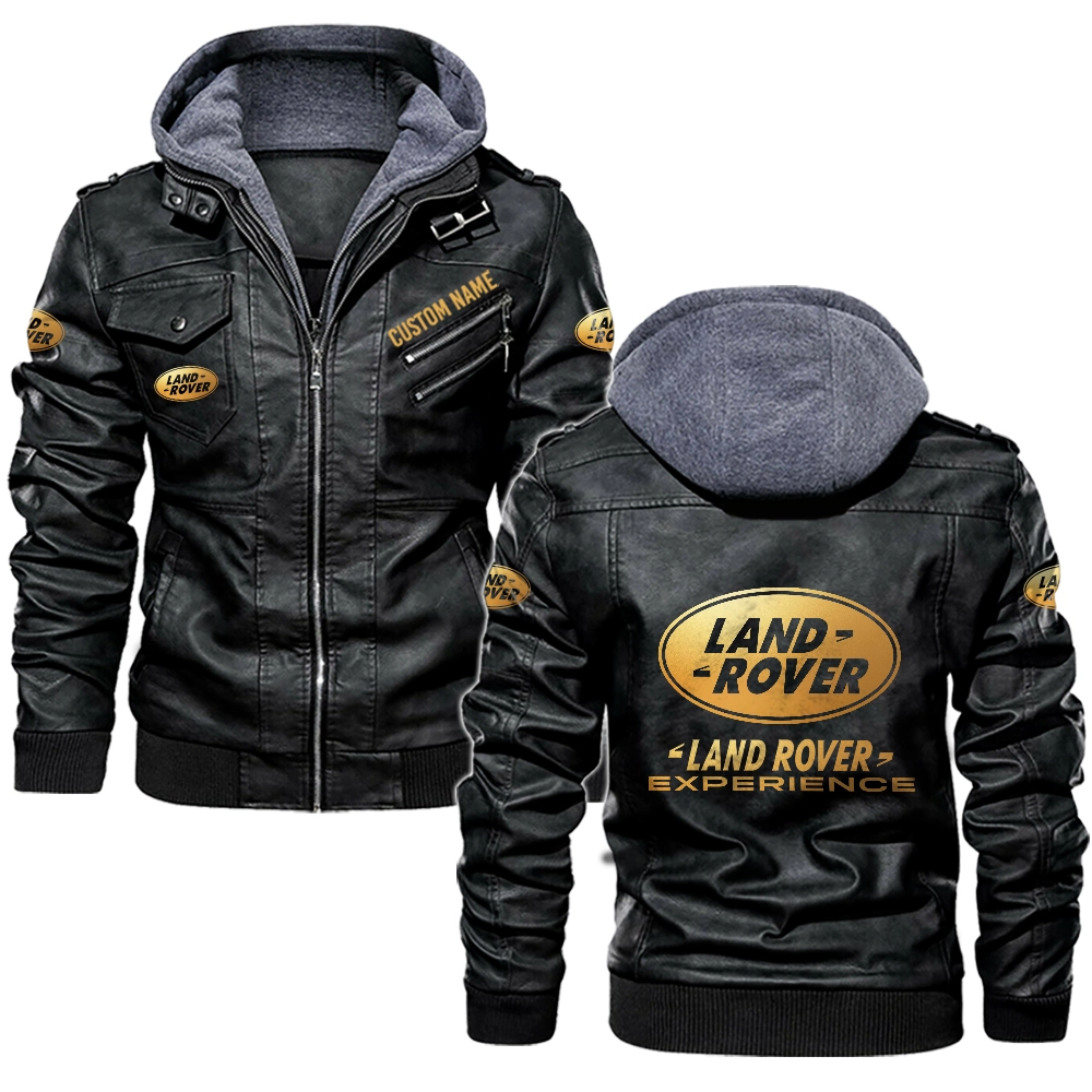 Land Rover Custom Name Skull Biker Car Driver Personalized Hooded Leather Jacket For Men Women