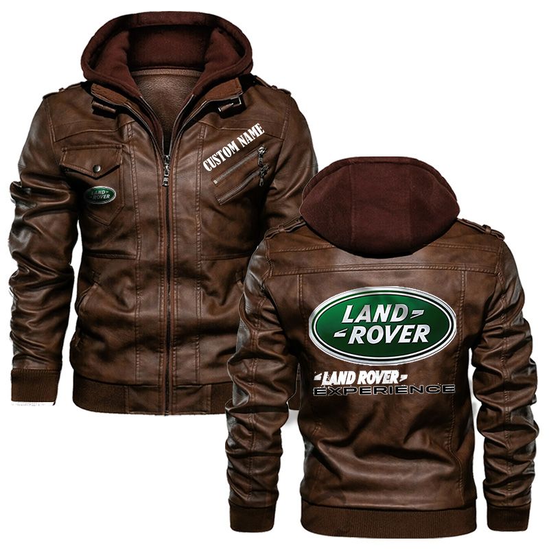 Land Rover Golden Logo Custom Hooded Leather Jacket Brown