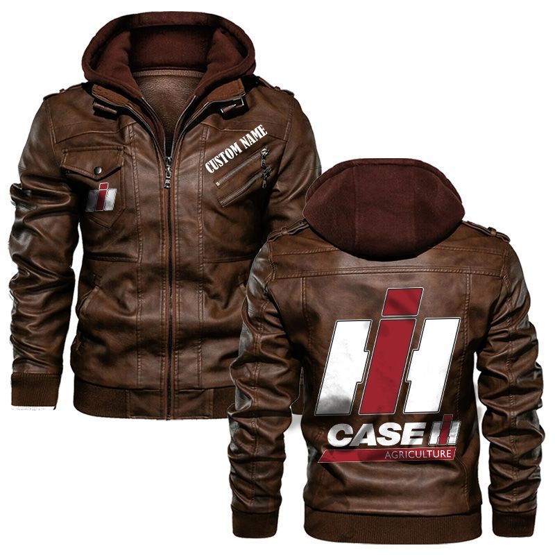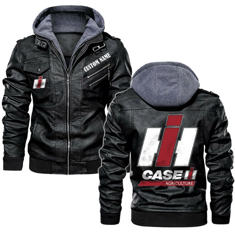 Case IH Custom Name Skull Biker Car Driver Personalized Hooded Leather Jacket For Men Women
