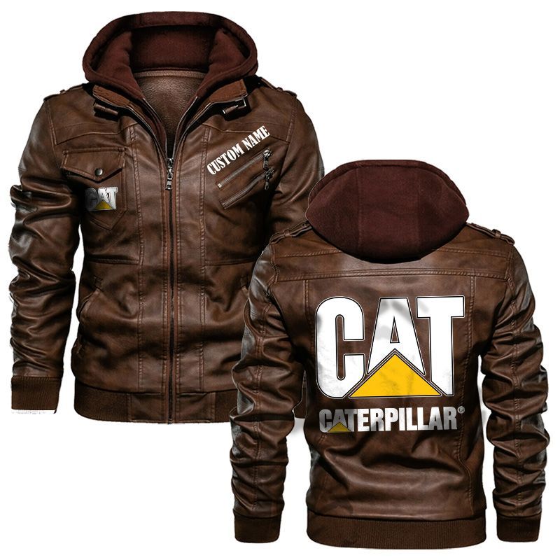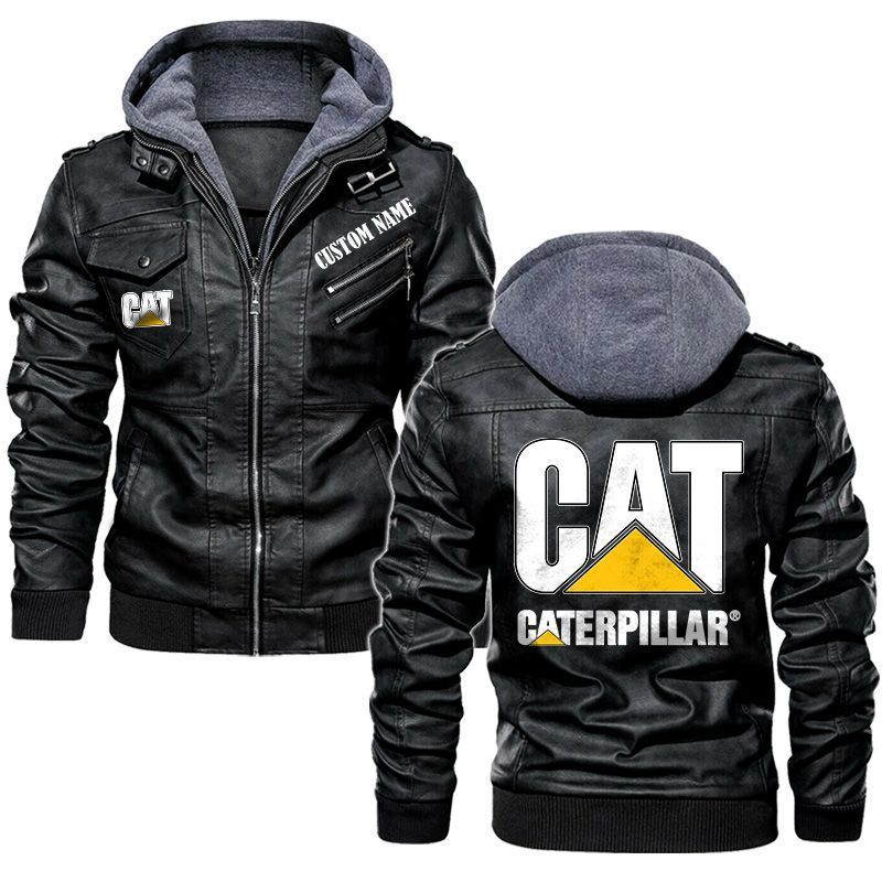 Caterpillar Inc Hooded Leather Jacket For Men Women