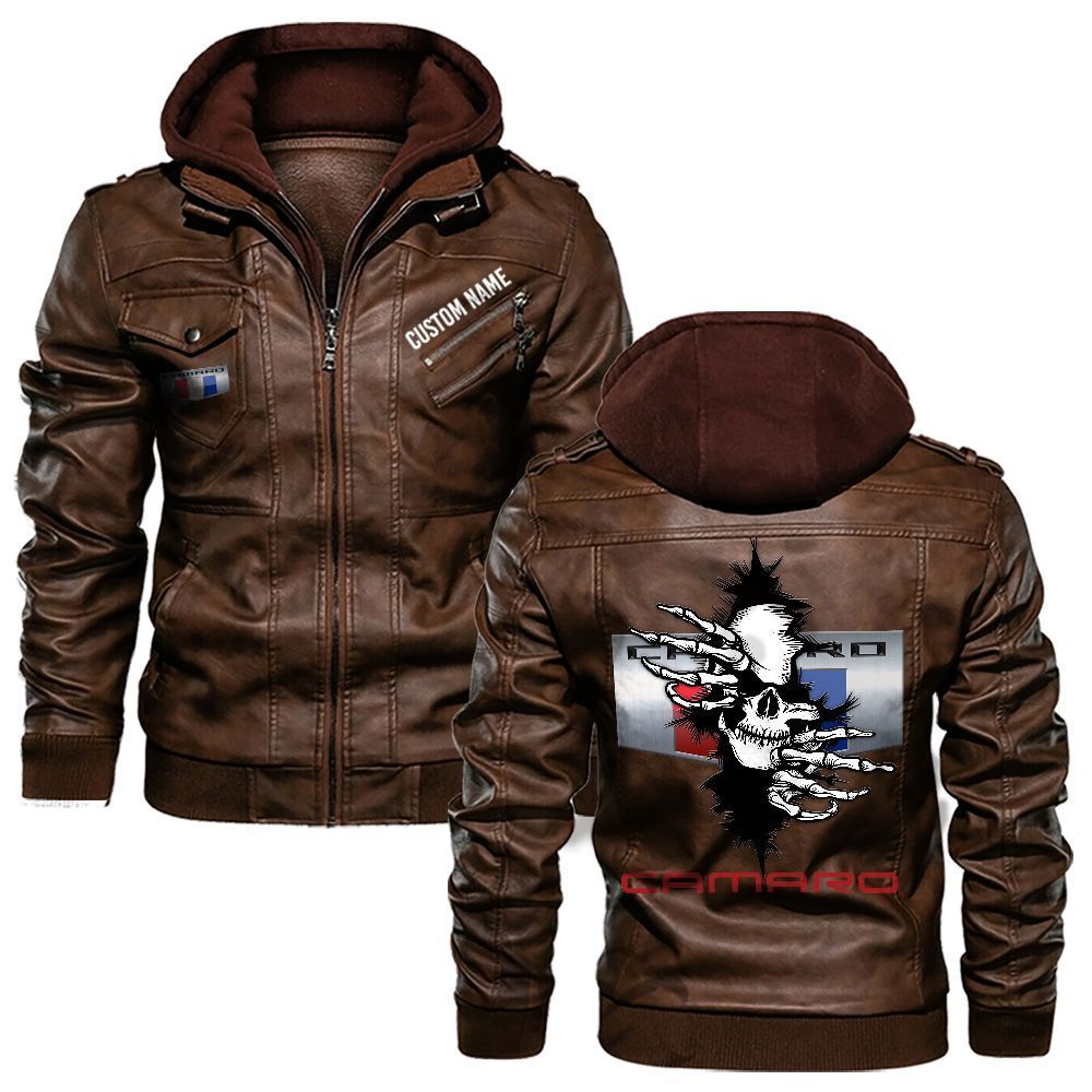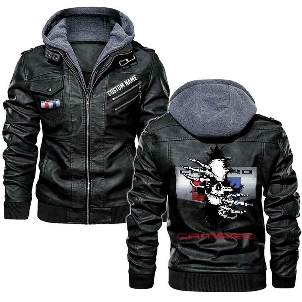 Chevrolet Camaro Custom Name Skull Biker Car Driver Personalized Hooded Leather Jacket For Men Women