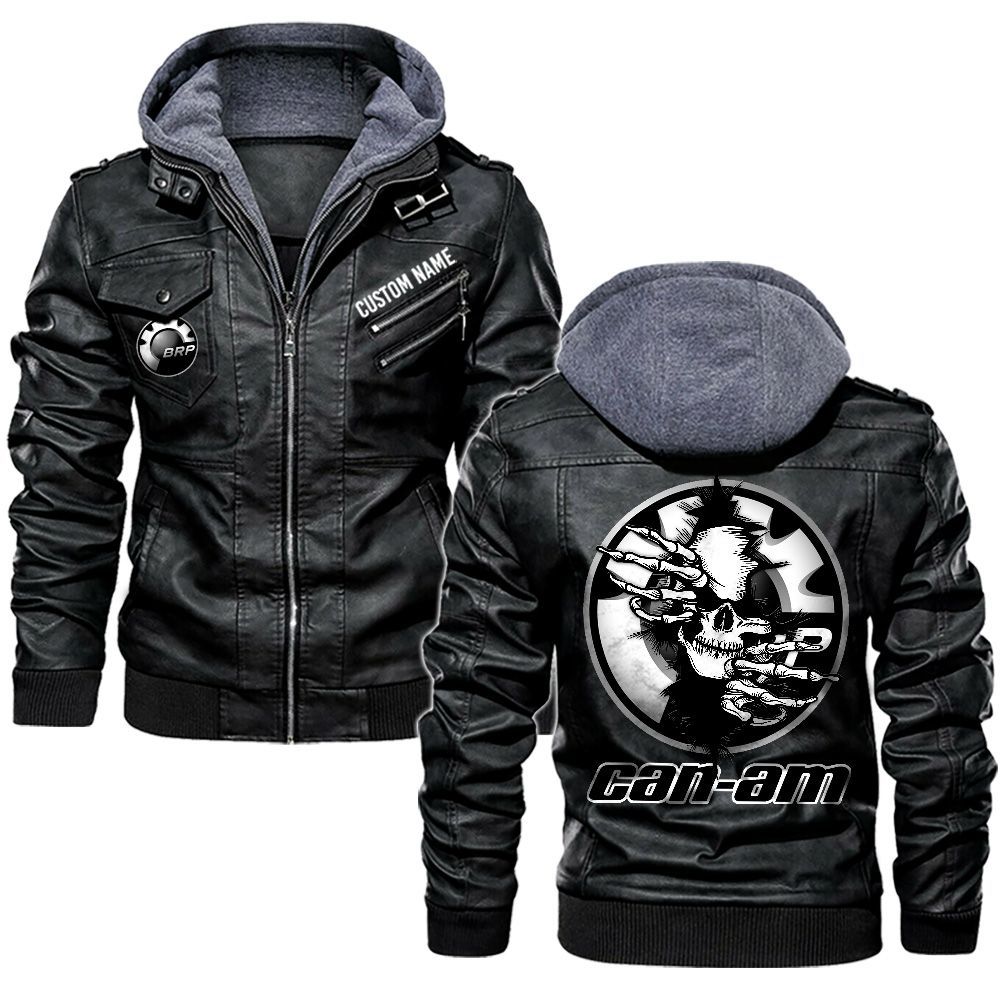 Can Am motorcycles Custom Name Skull Biker Car Driver Personalized Hooded Leather Jacket For Men Women