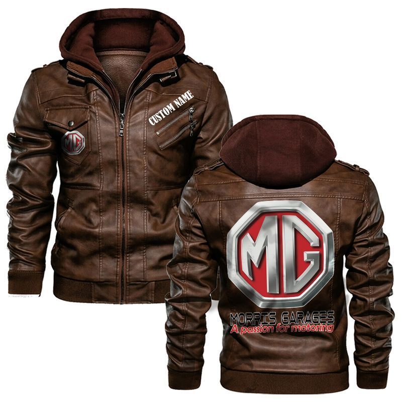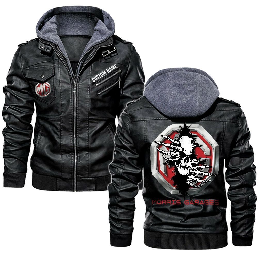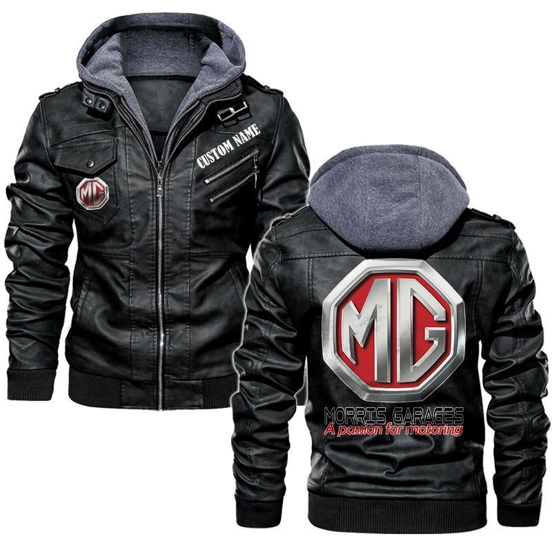 MG Cars Custom Name Skull Biker Car Driver Personalized Hooded Leather Jacket For Men Women
