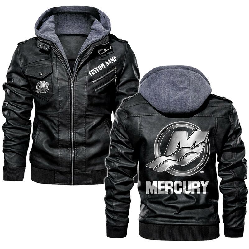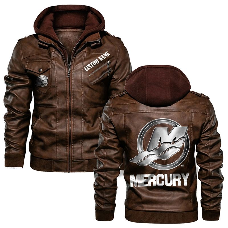 Mercury Marine Golden Logo Custom Hooded Leather Jacket Brown