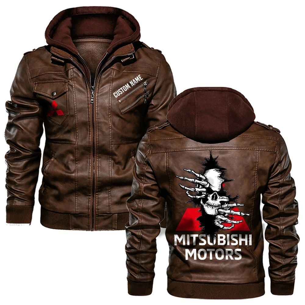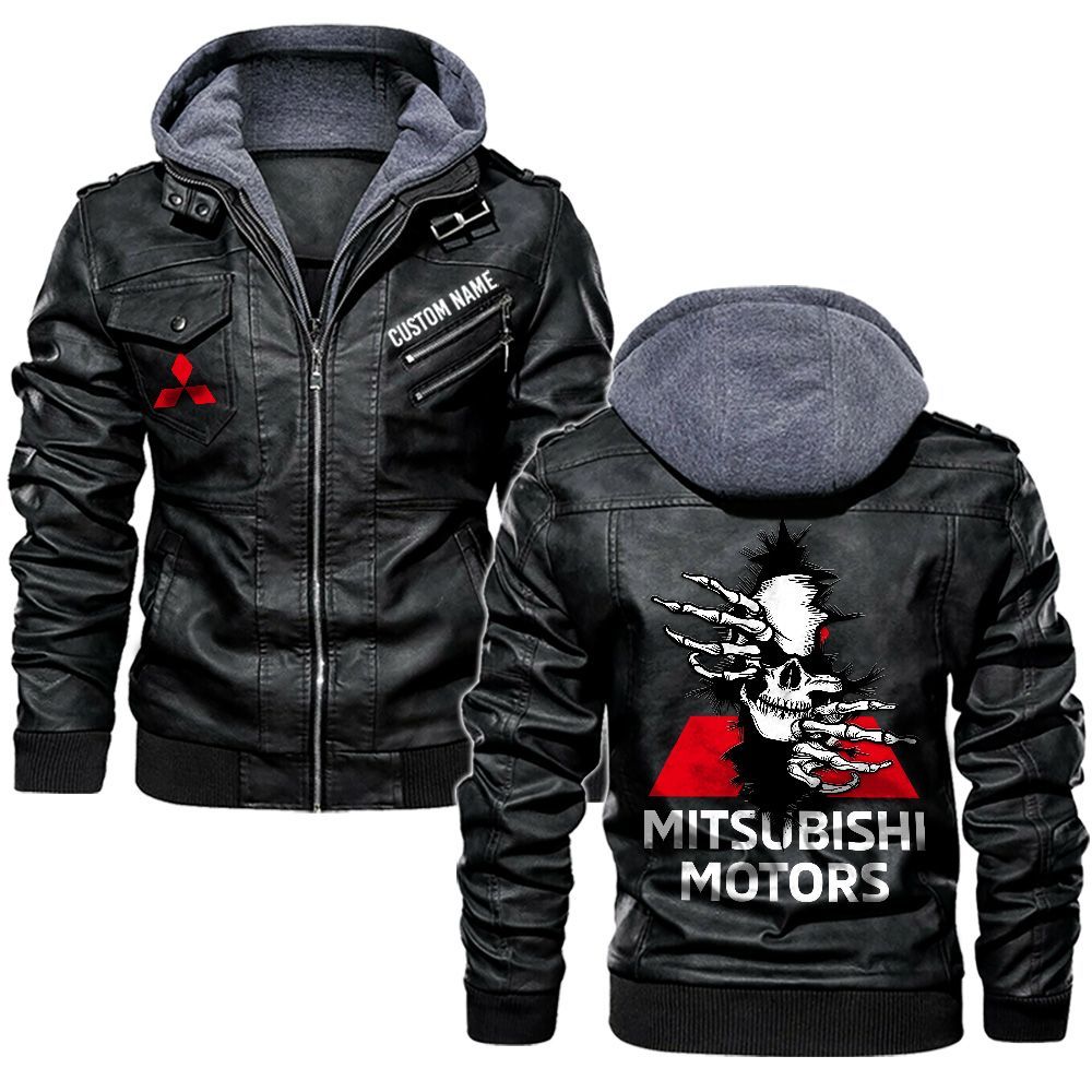 Mitsubishi Custom Name Skull Biker Car Driver Personalized Hooded Leather Jacket For Men Women