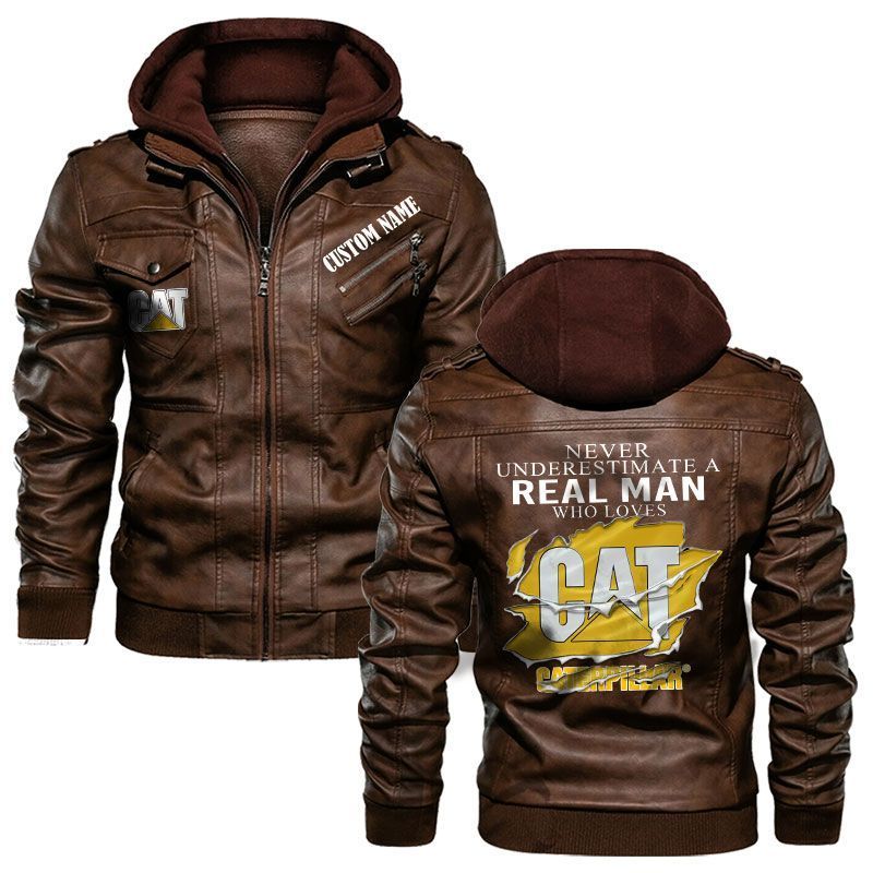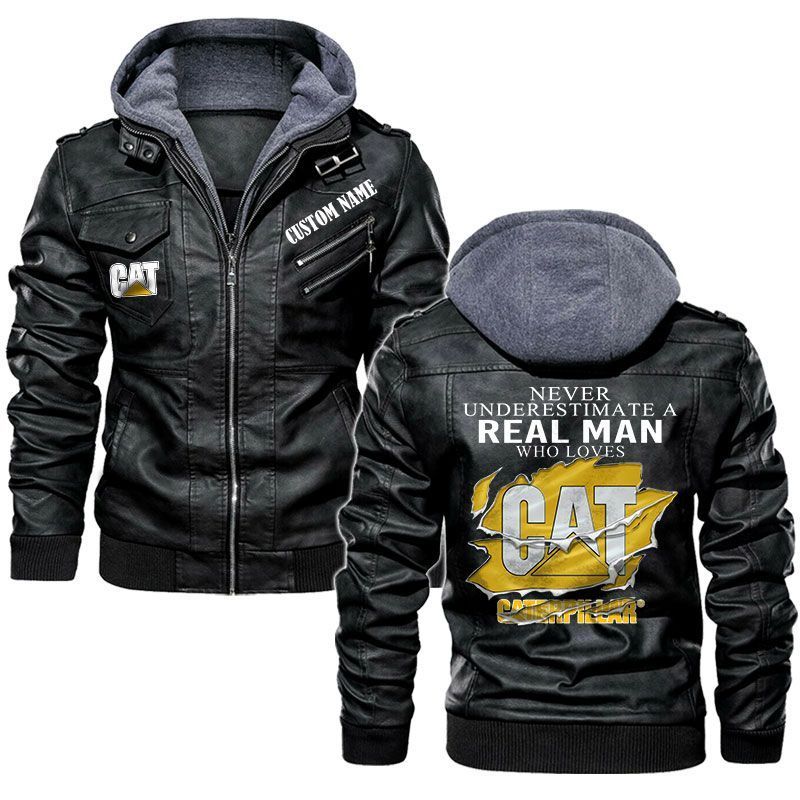 Never Underestimate A Real Man Who Loves Caterpillar Inc Hooded Leather Jacket
