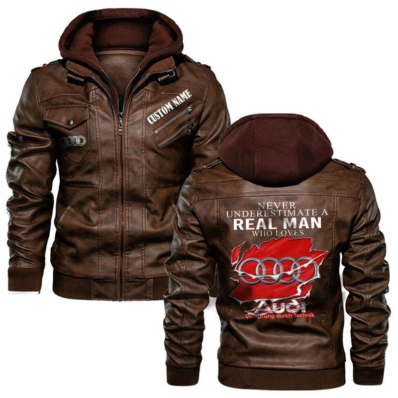 Never Underestimate A Real Man Who Loves Audi-logo Hooded Leather Jacket