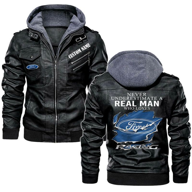 Never Underestimate A Real Man Who Loves Ford Racing Hooded Leather Jacket